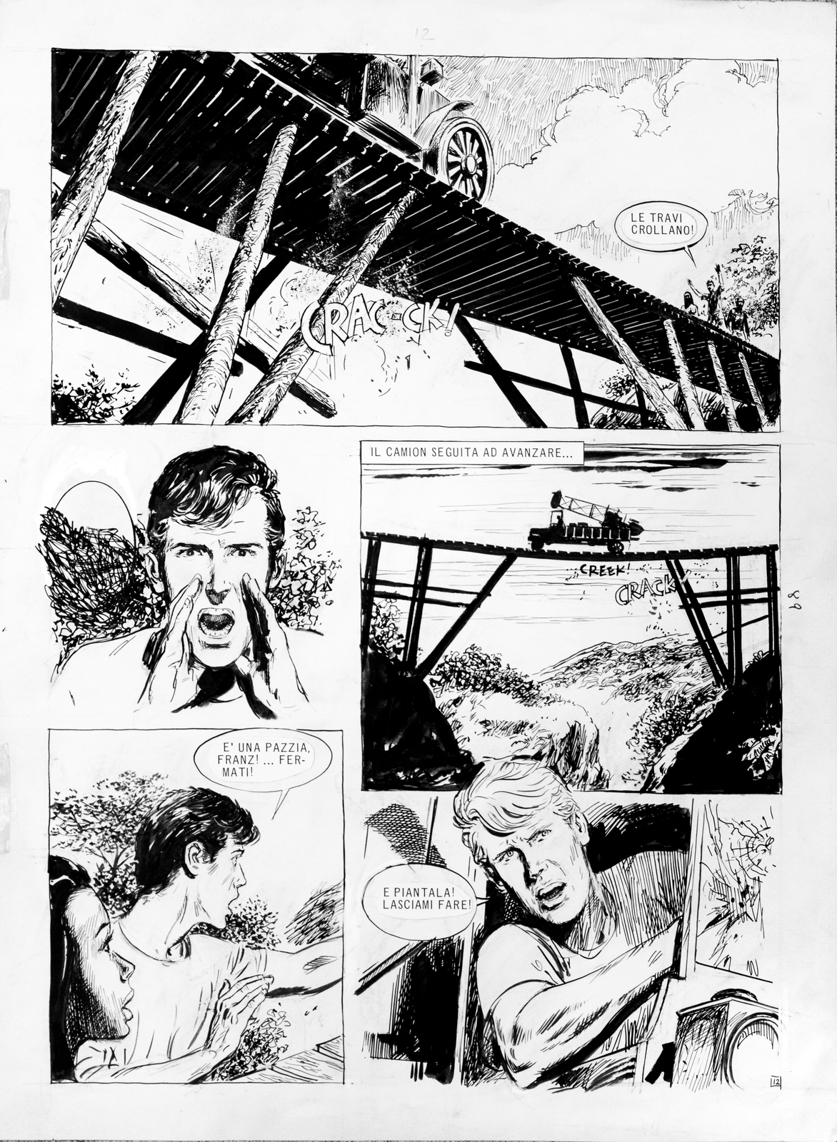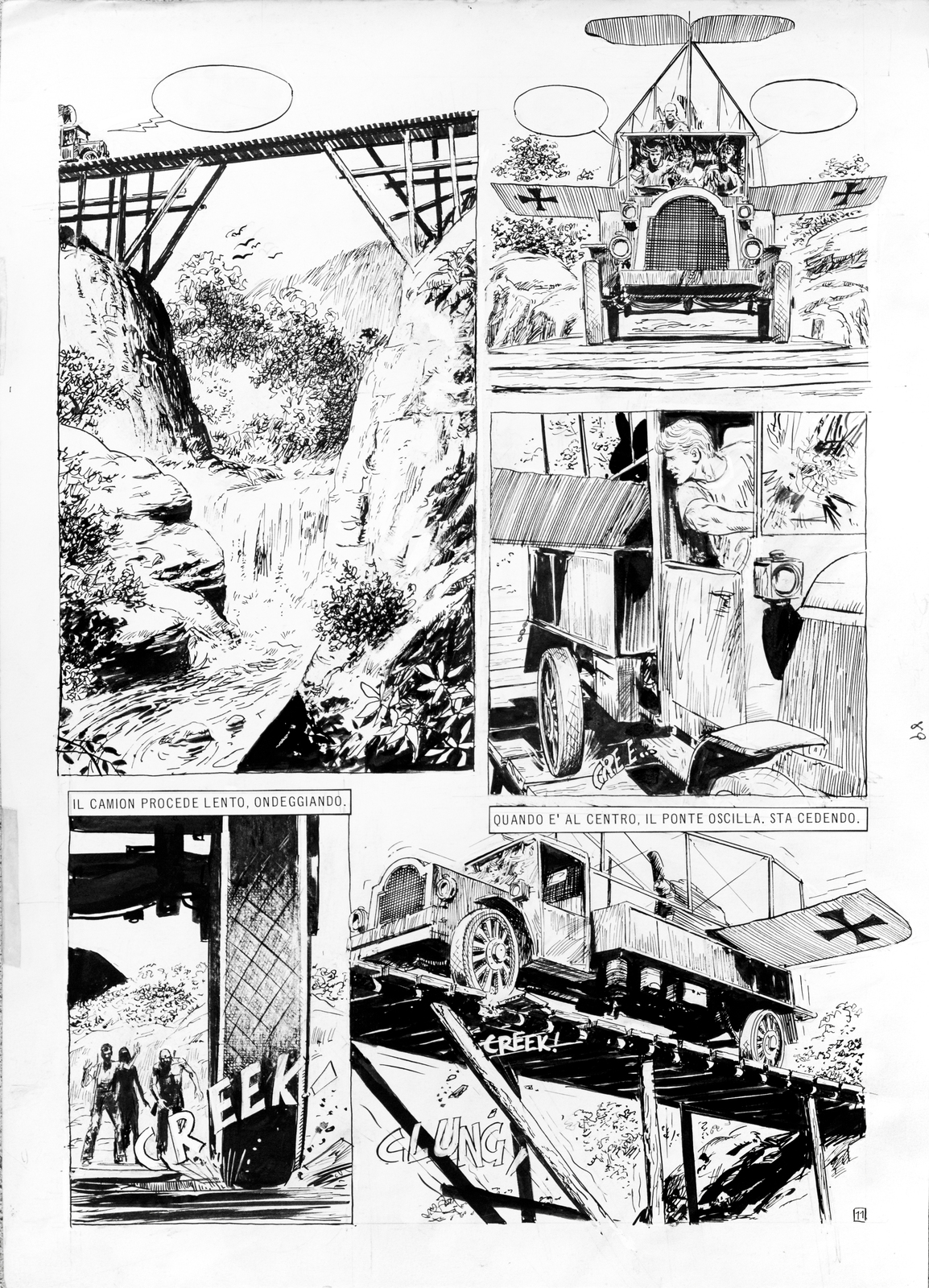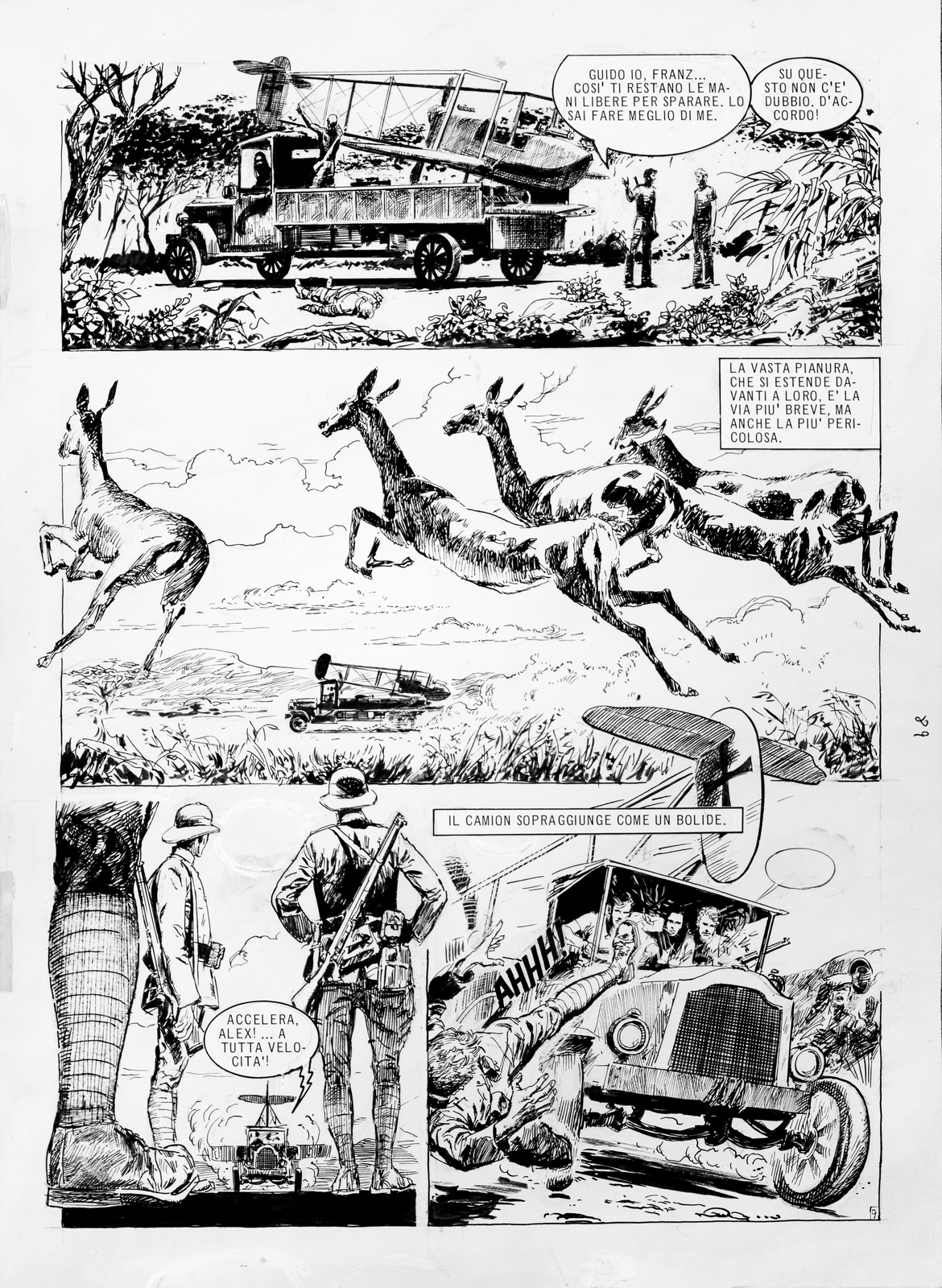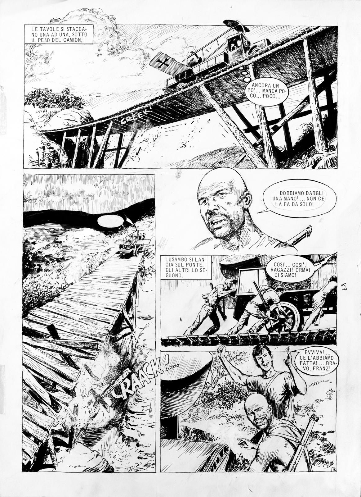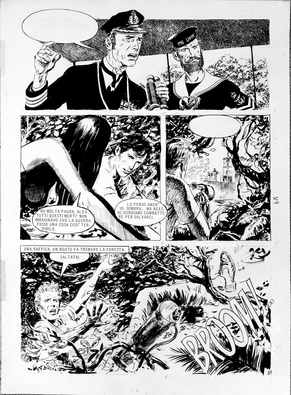 H Arias Victor "Tanganika" - Capitolo 3. 1979. Interventi di china, bianchetto su carta, rimaneggiamenti e montaggi. Cm 38,50 x 28,50. Capitolo 3 integrale della serie Tanganika. 14 tavole su carta, mancanze nel lettering