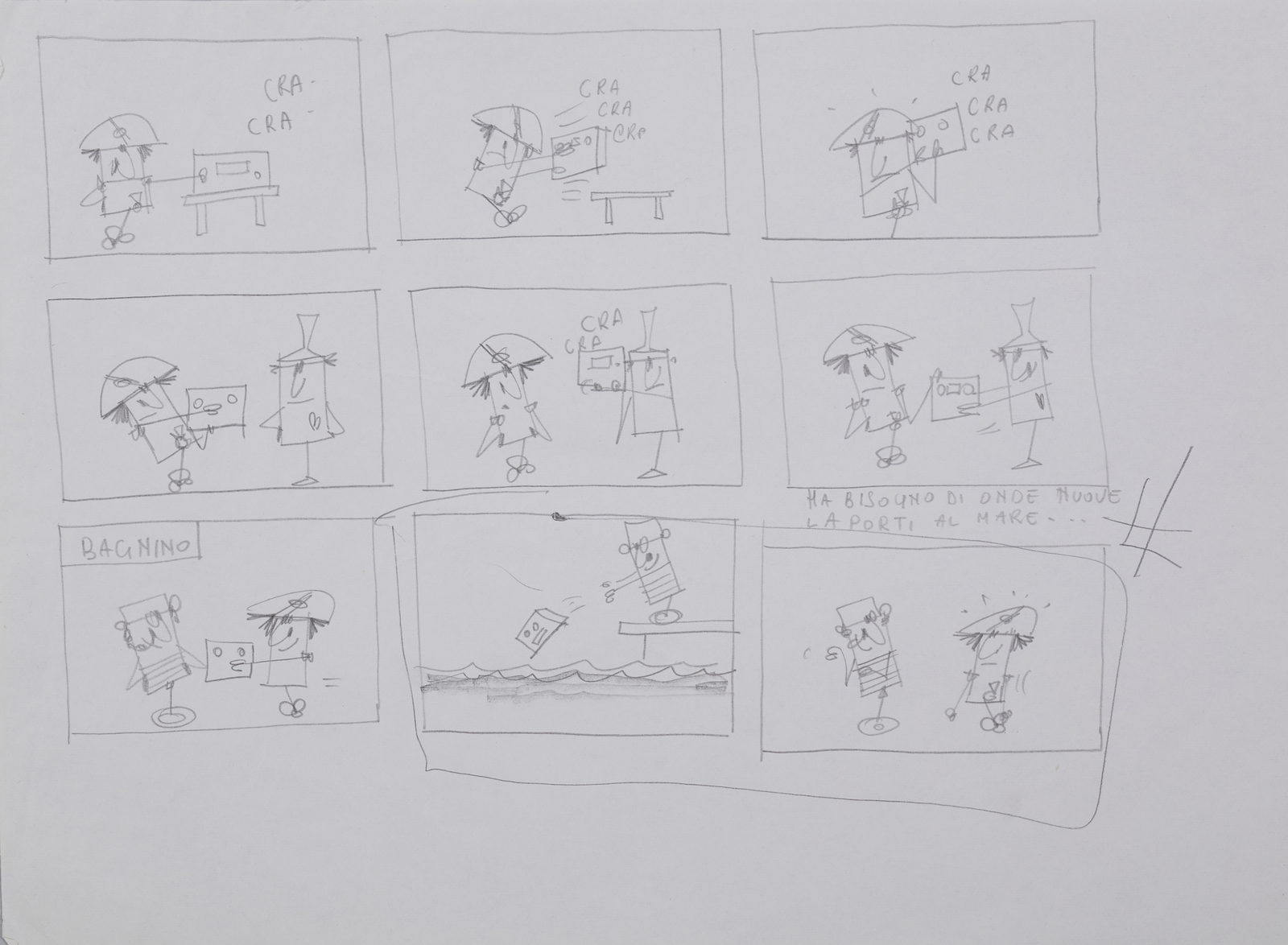 LODOLO FILM "Dalla serie sketches dei Posteros". grafite su carta. Cm 30,00 x 22,00. Il lotto proviene dagli archivi dei collaboratori della Lodolo Film, storica società di spot pubblicitari e di animazione italiana nata verso le fine degli anni 50. I Posteros, personaggi di fantasia, primitivi del futuro, nascono dalla collaborazione di Pino Pascali con la Lodolo film nel1958, un anno prima del suo diploma all’Accademia di Belle Arti di Roma; sodalizio che durò sino al 1967. Sandro Lodolo, titolare della casa di produzione pubblicitaria, e Pino Pascali, nel ruolo di creativo, realizzarono innumerevoli spot e cartoons pubblicitari. Gli Intermezzi che videro proprio i Posteros come protagonisti furono eseguiti , sia in bianco e nero che a colori, nel 1962 e nel 1968, anno della morte di Pascali, quando vennero ripresi da Lodolo come studio per i personaggi di un nuovo contenitore pubblicitario del secondo programma della Rai.