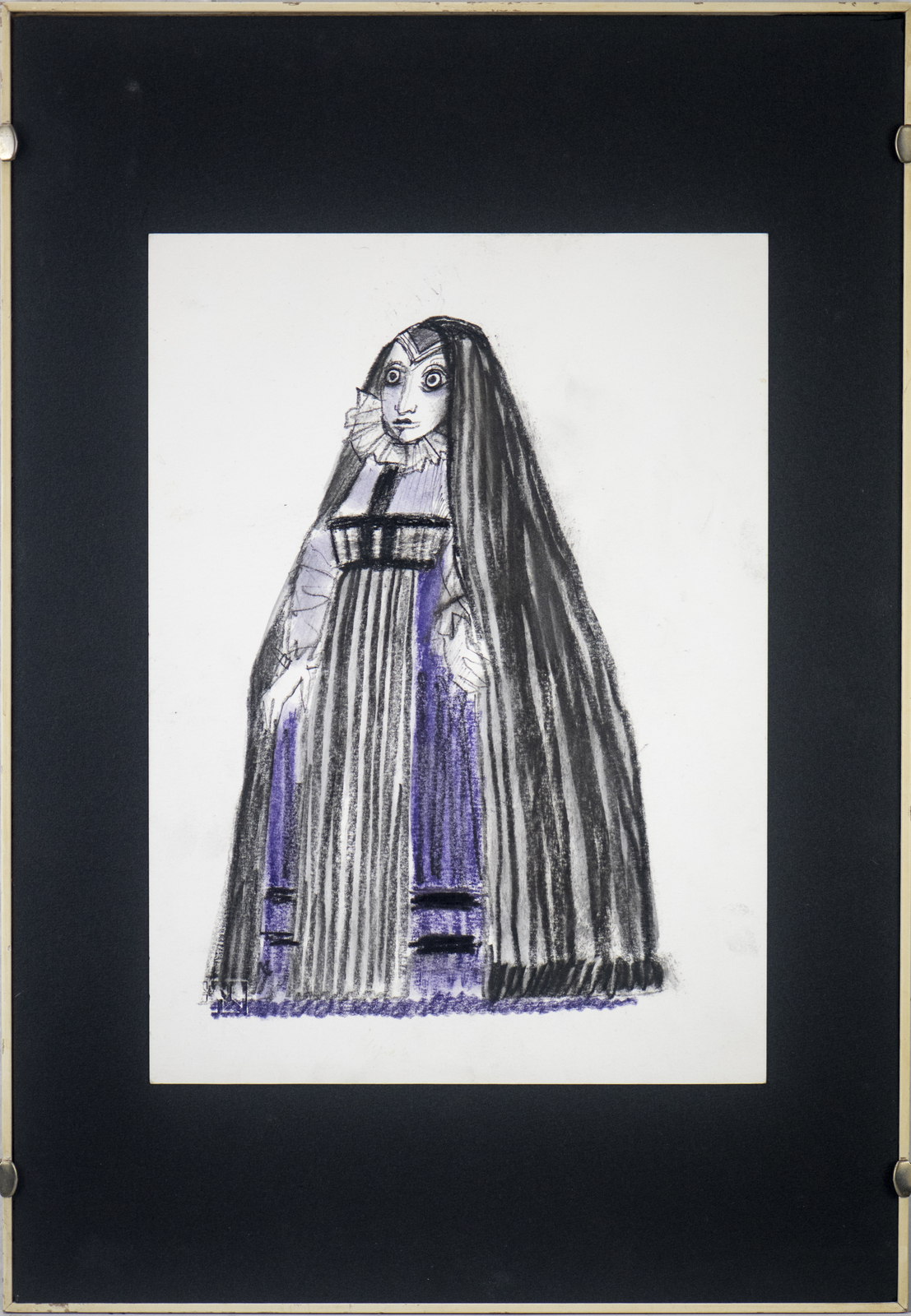 Lele Luzzati Attribuito Attribuito - "Figurina fiabesca". pastelli e matita su carta. Cm 33,00 x 24,00. Tavola non firmata