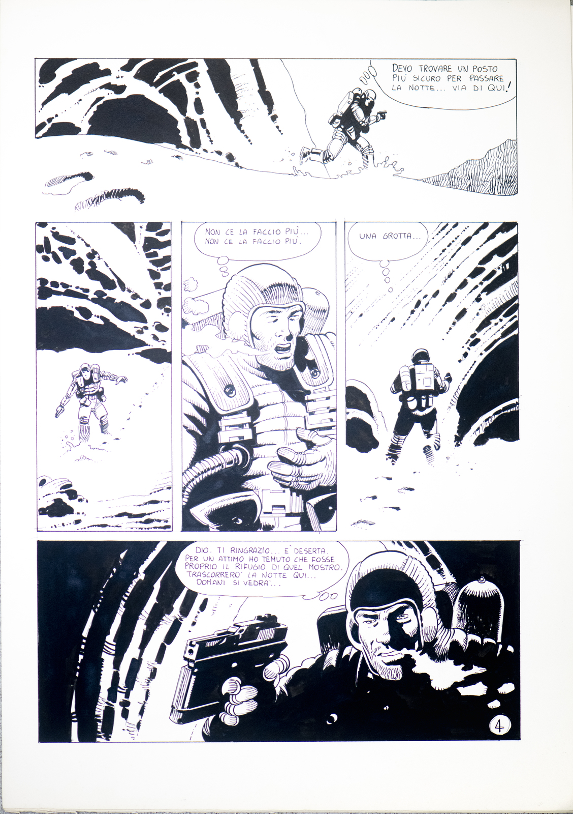 GIANFRANCO GIORGI JANCO "STORIA DI FANTASCIENZA". 1985. China su cartonciono. Cm 30,00 x 50,00. Una storia non completa di argomento fantastico per un autore storico di Lanciostory, Skorpio ed anche autore per Orient Express, Elvifrance e Storie Tese, sempre con storie di soggetto erotico e di avventura. In perfetto stato di conservazione .