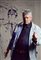 CATALANO ELISABETTA (1944 - 2015) HUGO PRATT, ROMA 1994. 1994. Stampa baritata fine art. Cm 28,00 x 37,00. La leggendaria performance di Hugo Pratt del 1994 che disegna Corto Maltese sul grande Vetro.Foto Modern dall'Archivio Elisabetta Catalano con autentica dello stesso archivio.