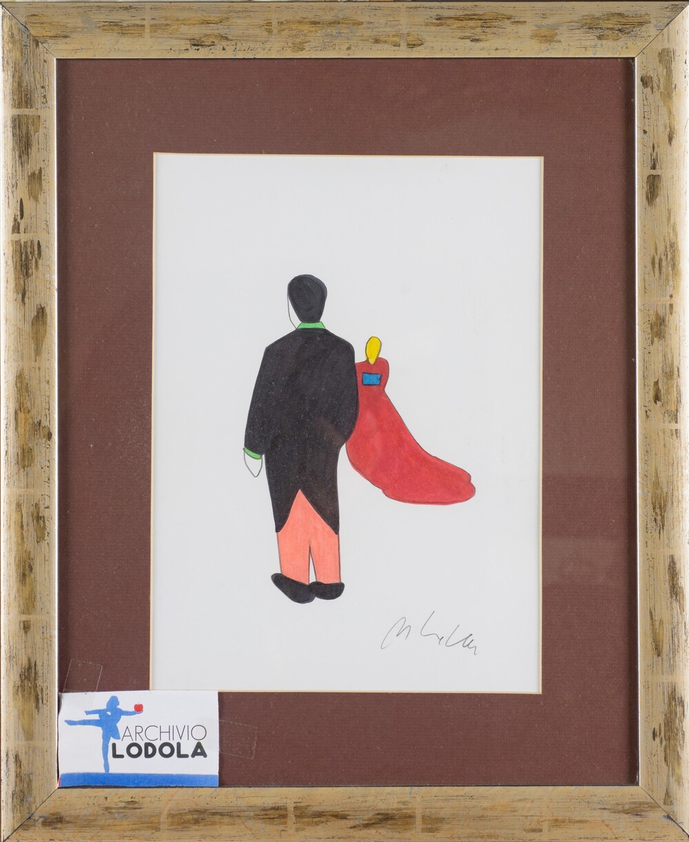 Marco Lodola - Il frak tecnica mista su carta 32 x 23,5 cm Firmato in basso a...
