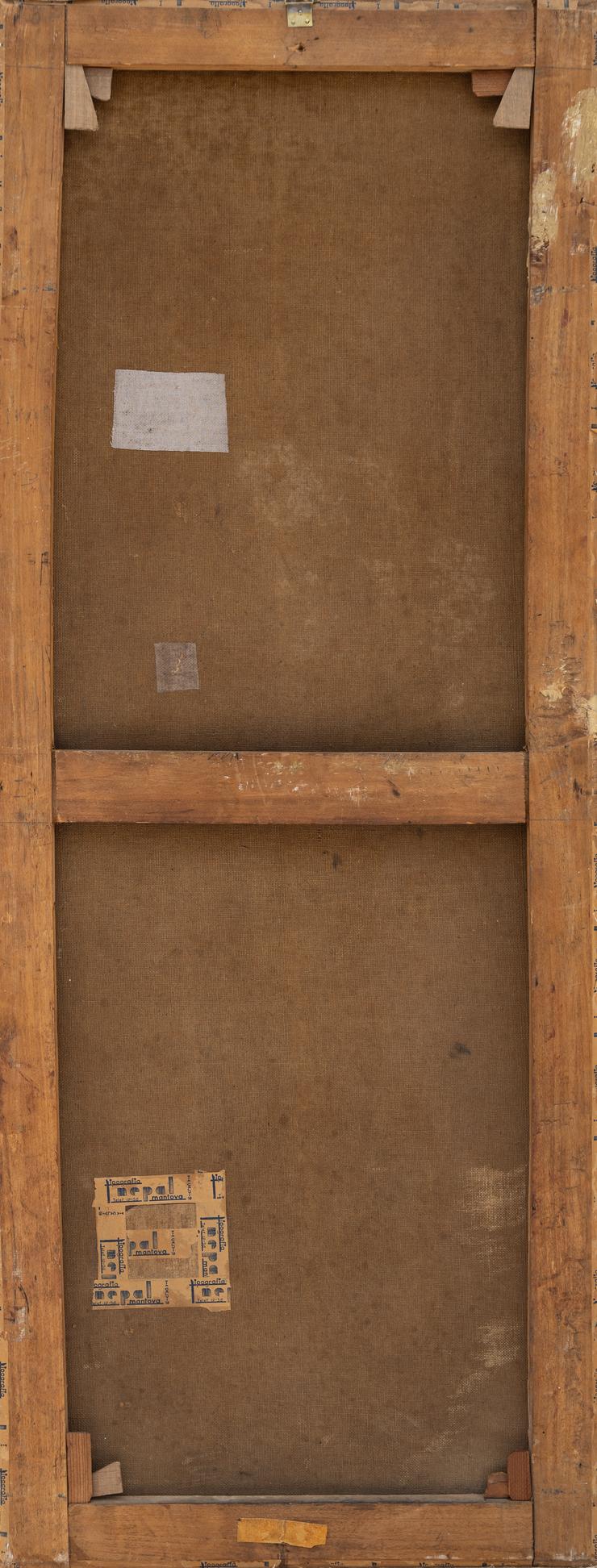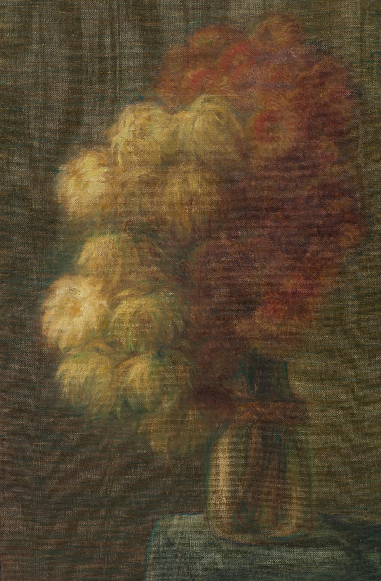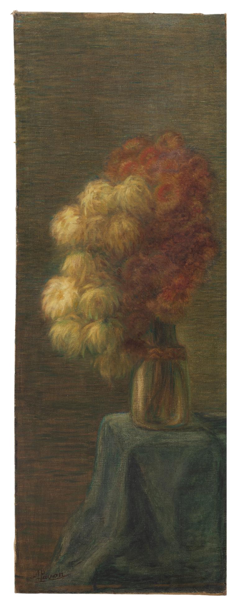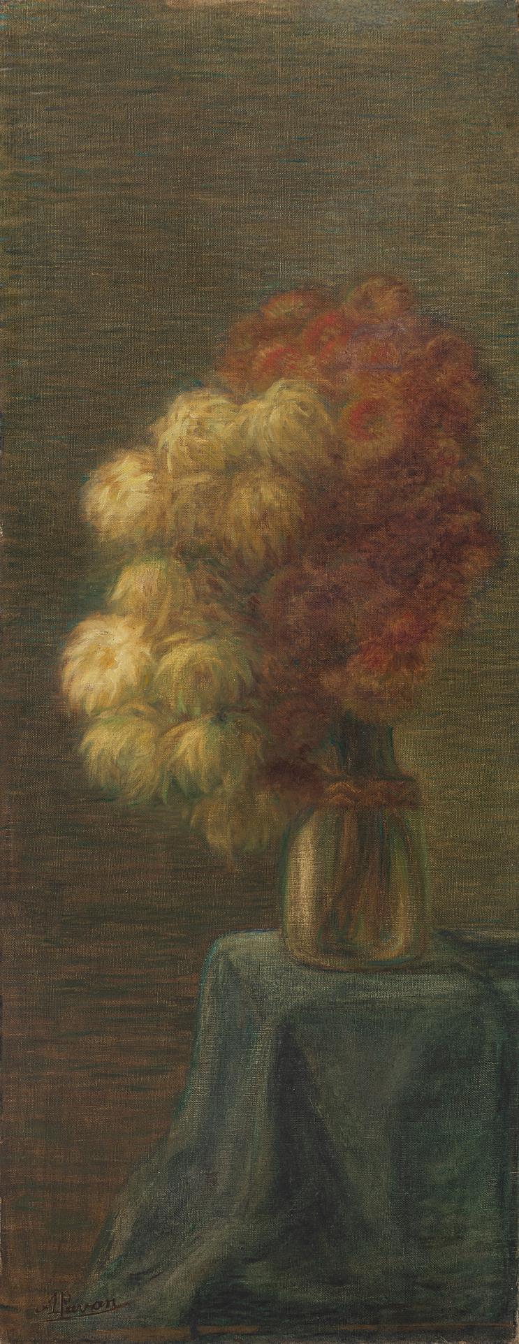 Angelo Pavan - Vaso di fiori - Vicenza 1893 - Venezia 1945 - Olio su tela cm 130x50 - Il pittore Angelo Pavan esordi' alla Permanente milanese del 1916, poi partecipo' a numerose esposizioni: a Roma, Vienna, Praga, Losanna, Lione, Torino, Milano, Vicenza e Padova. Si dedica al paesaggio specialmente a quello di Chioggia. Un suo dipinto, "Tramonto d'estate", fu acquistato dal Re, altri si trovano all'estero. Nella raccolta del comm. Agnelli di Torino trovasi "Tramonto", eseguito con tecnica divisionista tecnica abbandonata poi dall'artista per una più personale, dalla pennellata larga e grassa.Si citano ancora del pittore Angelo Pavan: "Pensiero lontano", presso l'autore; "Pescatore", proprietà del signor Ettore Piatti di Milano; "Autoritratto"; "Interno di osteria"; "Mercato"; "Paesaggio", alla Galleria d'Arte moderna di Milano.Note biografiche tratte dal Dizionario Illustrato dei Pittori, Disegnatori ed Incisori Italiani A.M. Comanducci.