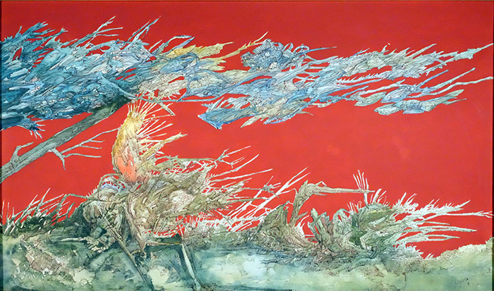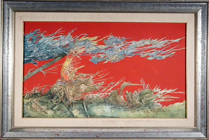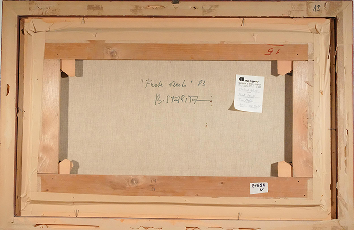 Starita Bruno (Napoli 1933 - 2010) Frate vento tecnica mista su tela, cm 50x85 firmato e datato in basso a destra: B. Starita 83 a tergo cartiglio Galleria Apogeo, Napoli