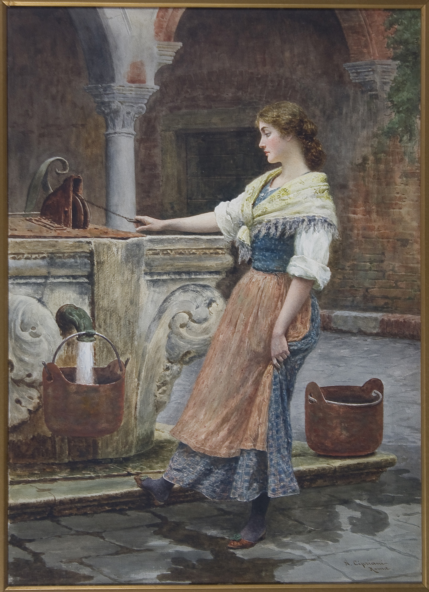 Nazzareno Cipriani (1843-1925) Al Pozzo, Venezia Tecnica mista su cartone cm...