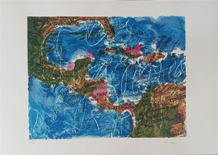 Mario Schifano “Cartina Caraibi” 1996