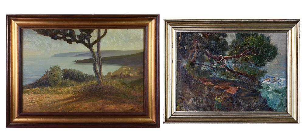 LOTTO DI DUE OPERE costituito da: PAESAGGIO MARINO CON ALBERO IN PRIMO PIANO,...