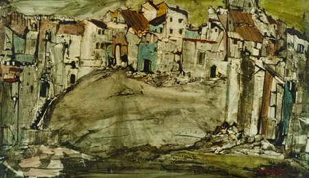Alfredo Nannoni (Tavernelle Val di Pesa (Fi) 1925) PIAZZA Olio su tela, cm. 55x90 Firmato in basso a destra.