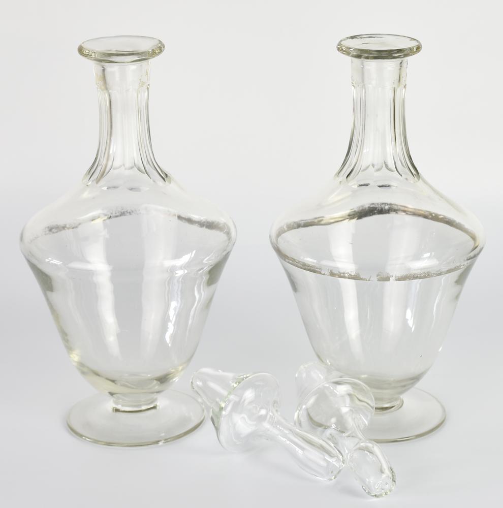 Vetro, forma a campana rovesciata con spalla del corpo e bordo della bocca argentato, tappi in vetro soffiato