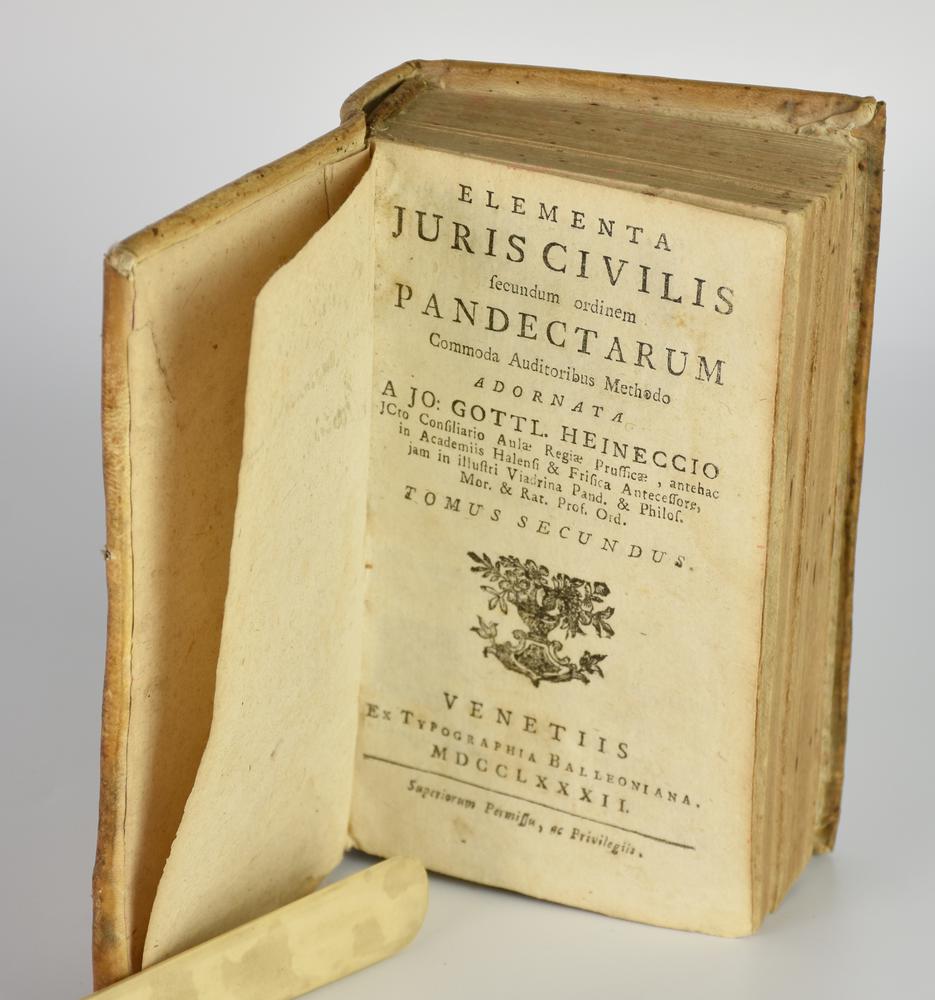 ADORNATA A JO: GOTTL. HEINECCIO (…) TOMUS SECUNDU. VENETIIS Ex Typographia Balleoniana.