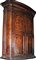 lastronata in radica di noce con profili e sagome in legno ebanizzato, mossa sui fianchi e sul fronte suddiviso in quattro ante, cimasa agettante, serratura e cerniere coeve