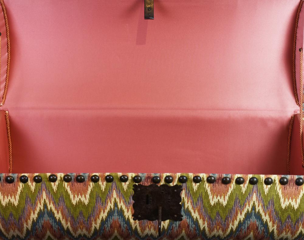 Lot 216 | BAULE RIVESTITO DI TAPPEZZERIA, primi del XX secolo cm 91x37 h cm 39 Restaurato