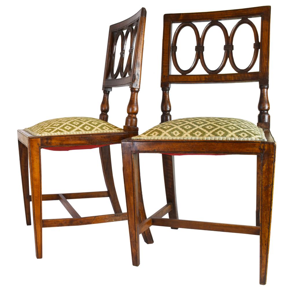 COPPIA DI SEDIE LUIGI XVI legno di noce struttura con gambe a faretra,...
