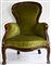 struttura in legno di noce, imbottiture con rivestimento in velluto verde