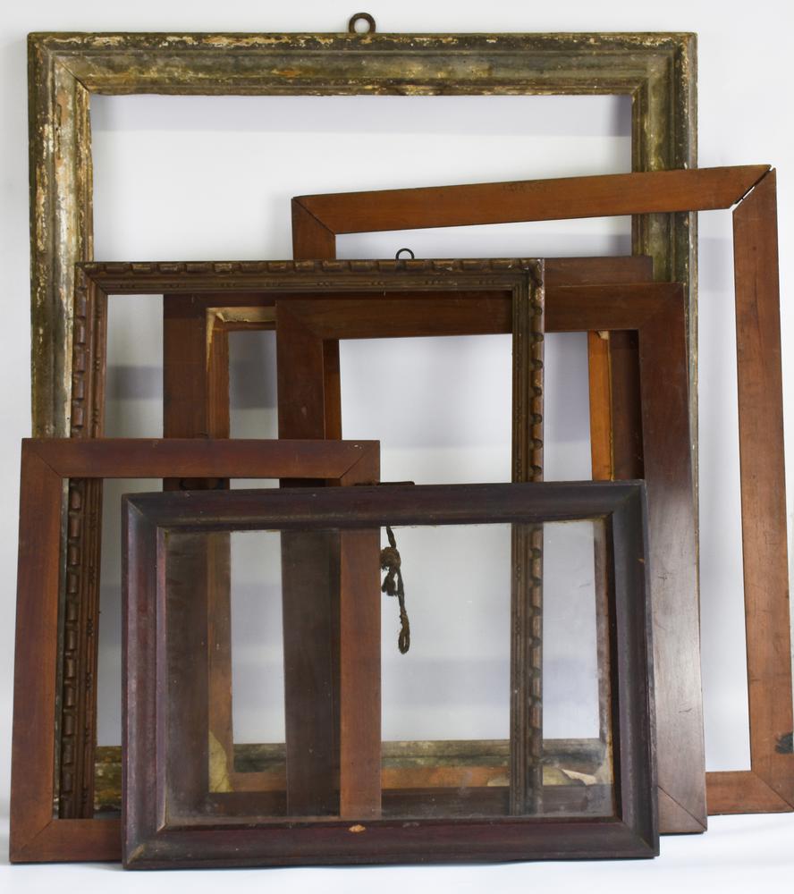 LOTTO DI SETTE CORNICI epoca, finiture e dimensioni varie: cm 90x76;cm 73x54;...