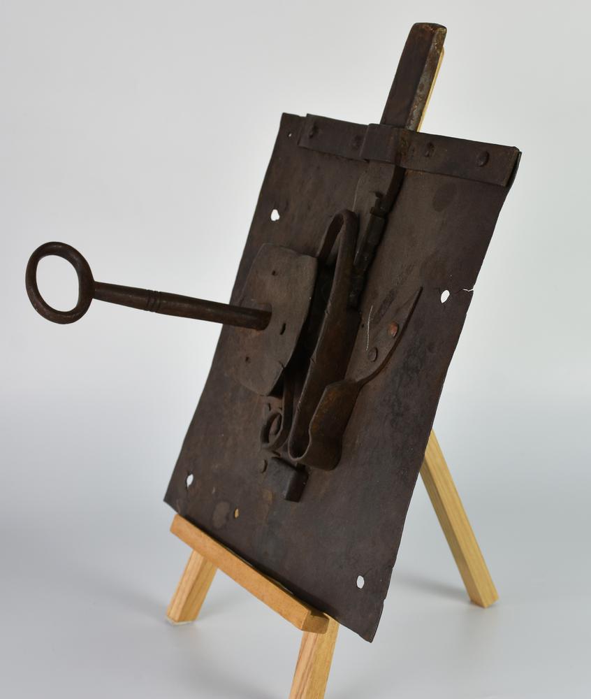 SERRATURA DA PORTONE ferro battuto, completa di chiave cm 28,5x27, lungh....