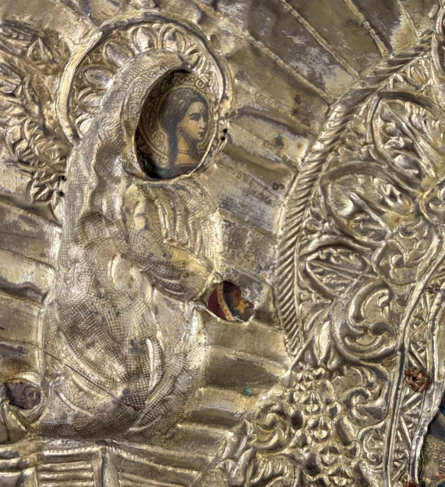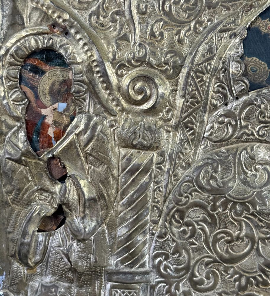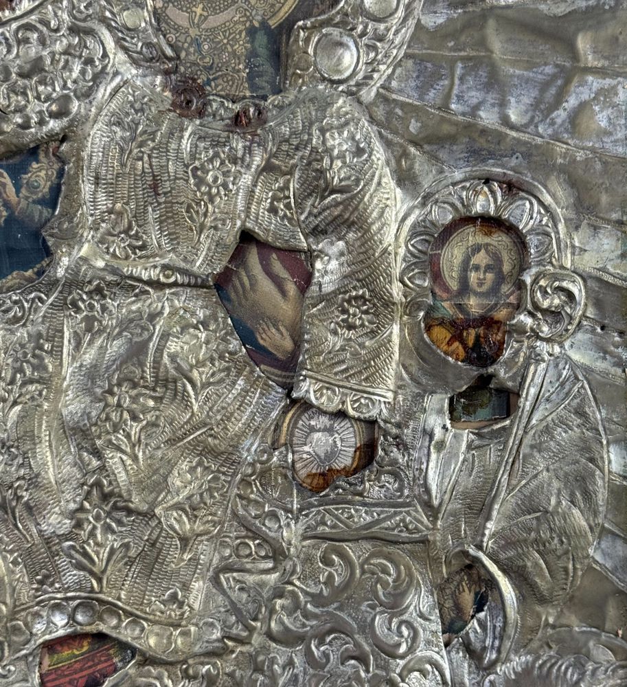 Icona, oggetto sacro decorativo, periodo XIX secolo in metallo argentato a...