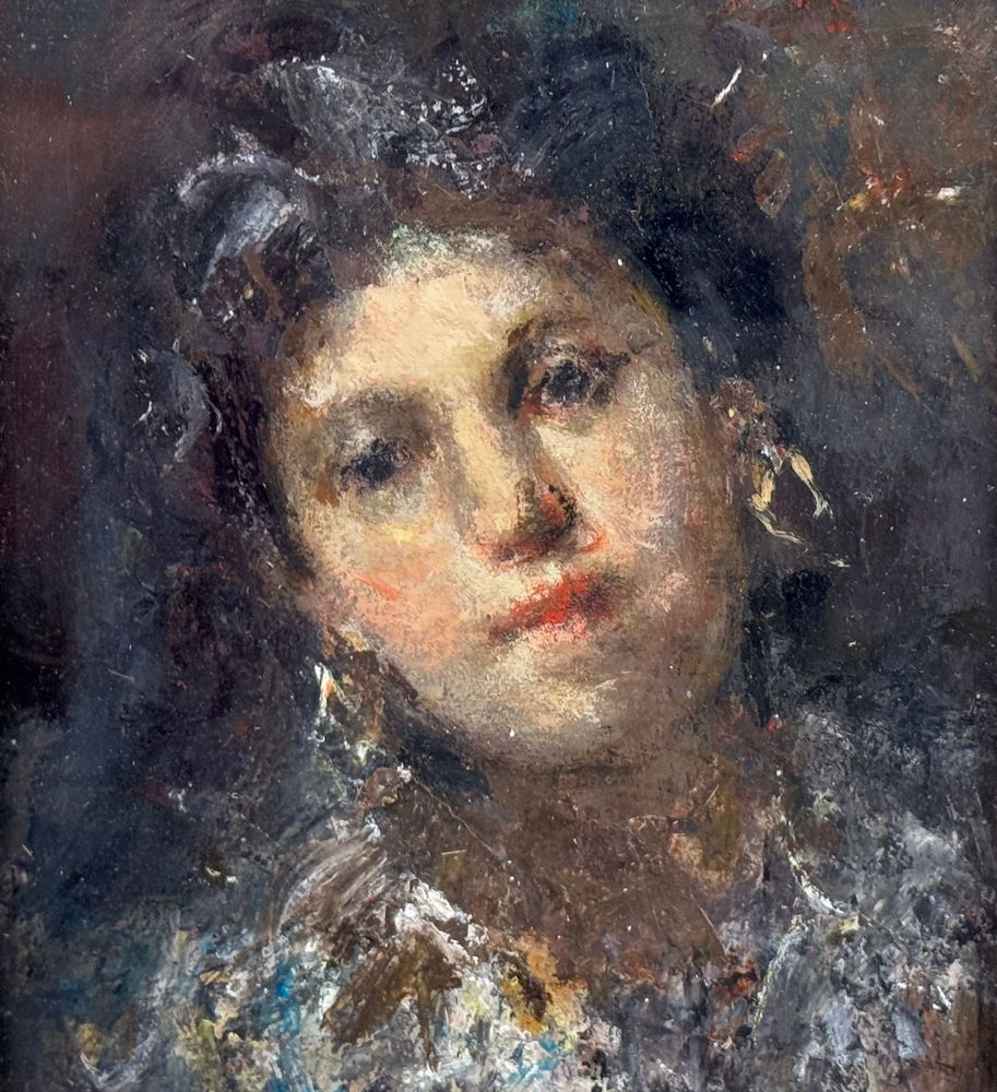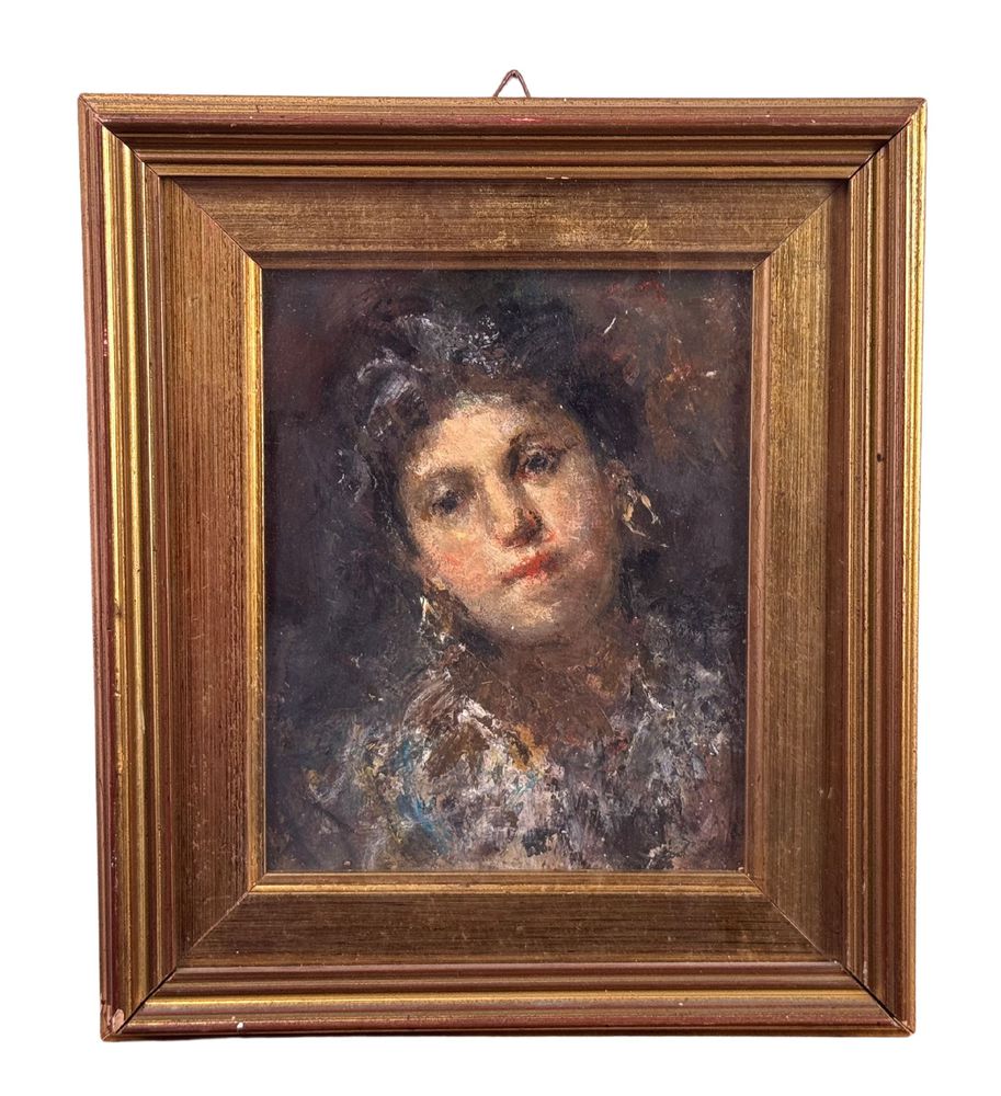 Dipinto olio su tavola, periodo 1930 - 1940, scuola Napoletana, raffigurante Ritratto di giovane donna. Dimensioni compreso cornice: 24x28 cm. Dimensioni interno cornice: 15x20 cm. Da artista anonimo di scuola napoletana, opera in buone condizioni.