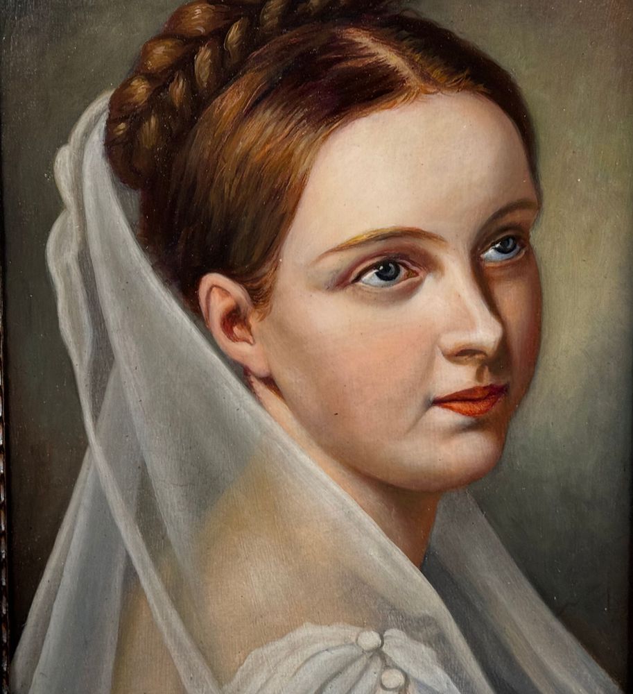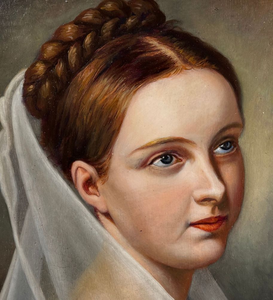 Dipinto olio su tela, periodo XX secolo scuola Italiana, raffigurante Ritratto di donna, opera tratta da un lavoro di Joseph-karl Stieler. Dimensioni compreso cornice: 44x54 cm. Dimensioni interno cornice: 35x45 cm. Da artista anonimo. Opera in buone condizioni.