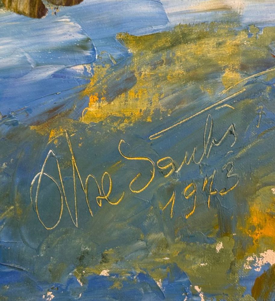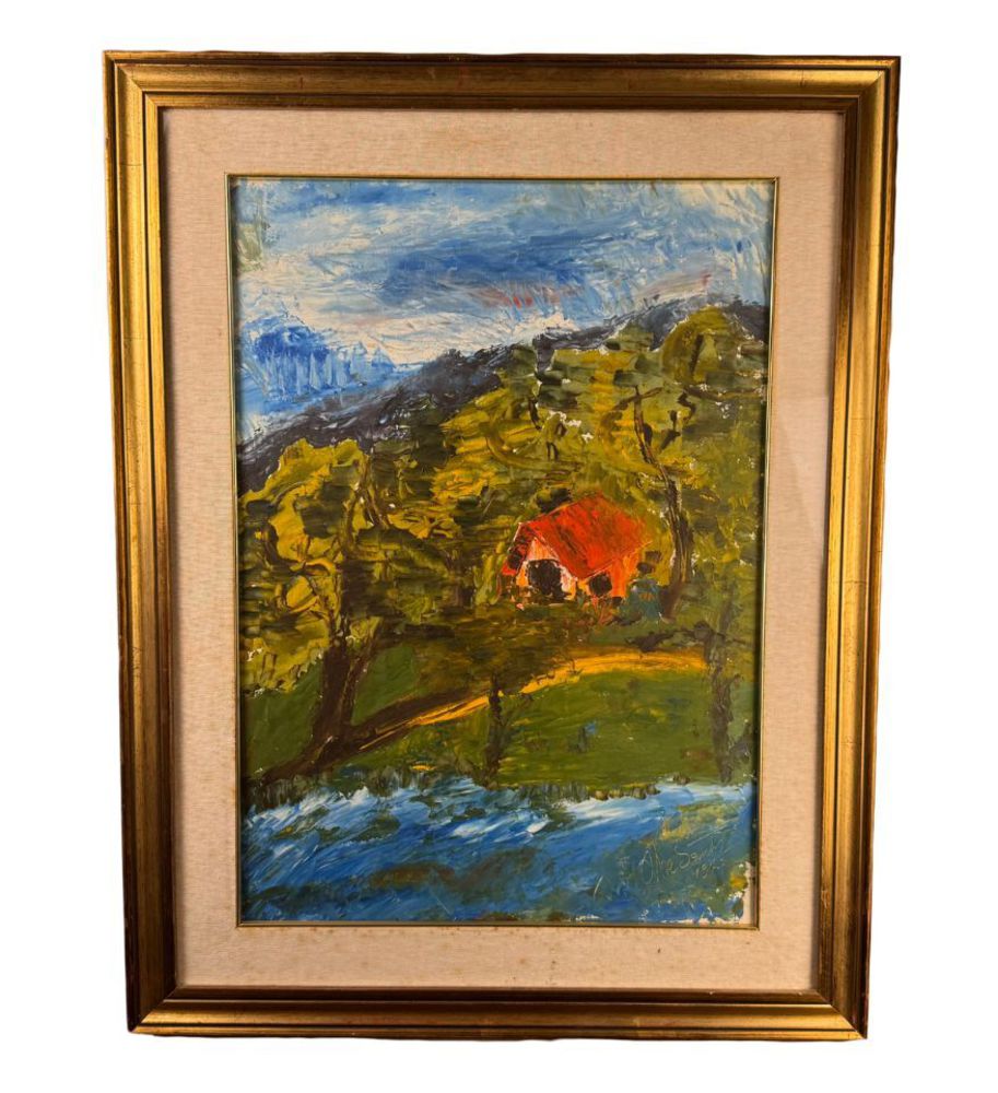 Dipinto olio su tela, periodo XX secolo scuola italiana, raffigurante Paesaggio. Dimensioni compreso cornice: 70x90 cm. Dimensioni interno cornice: 50x70 cm. Reca firma in basso a destra da A. De Santis (1950). Opera in buone condizioni.
