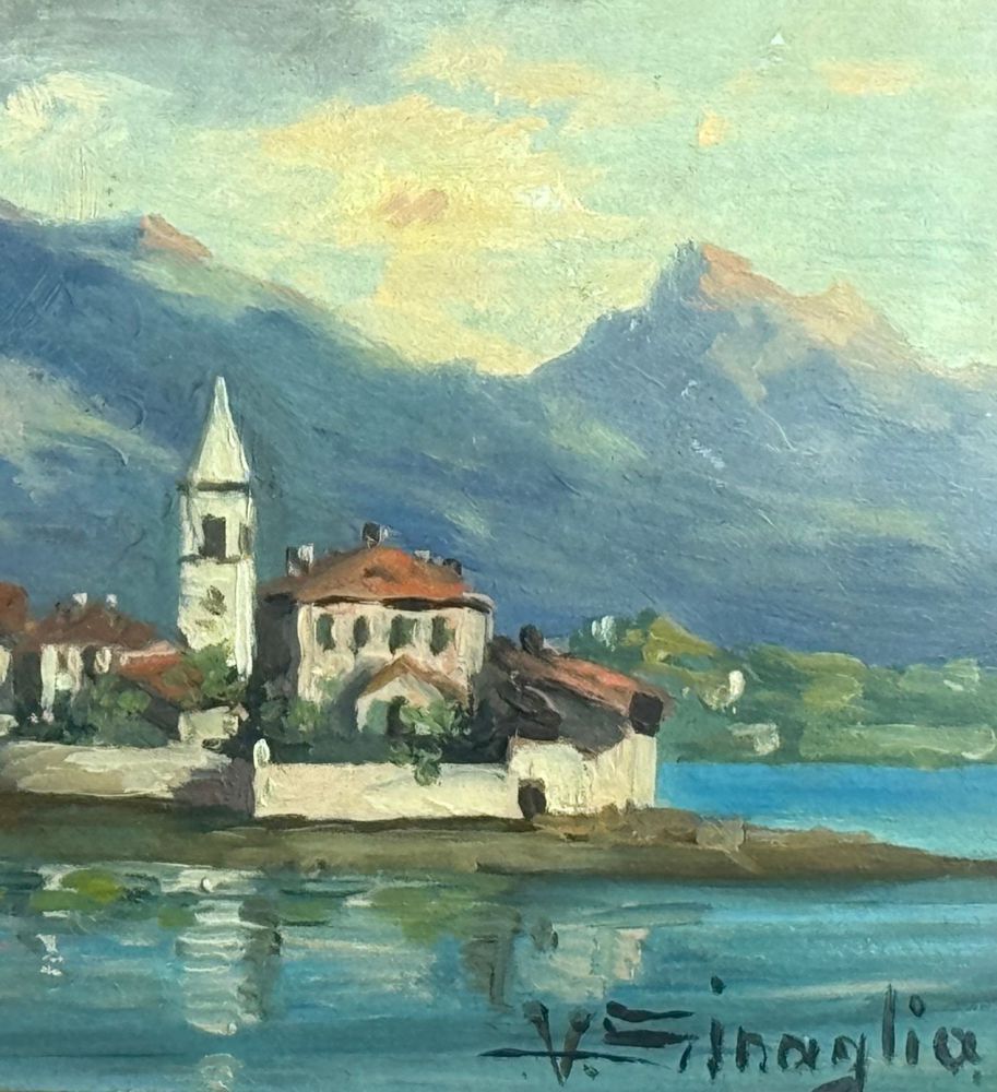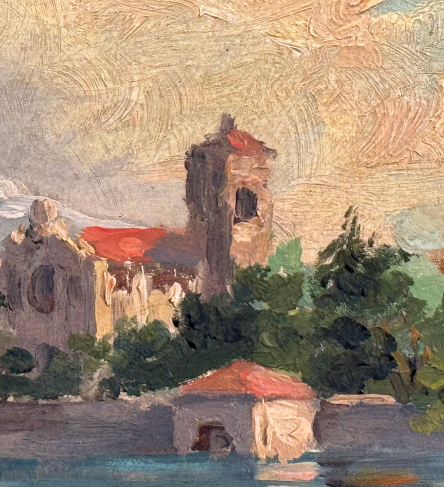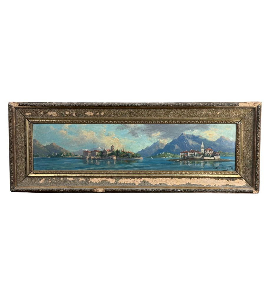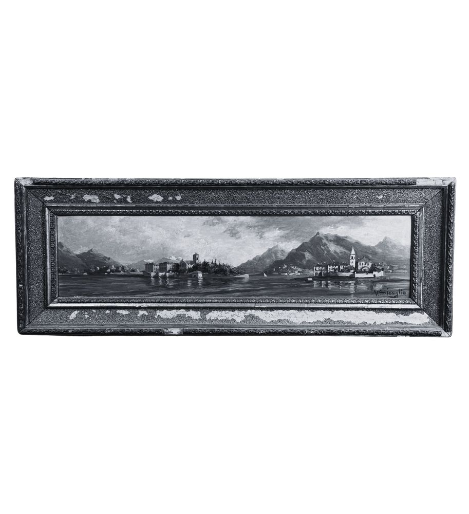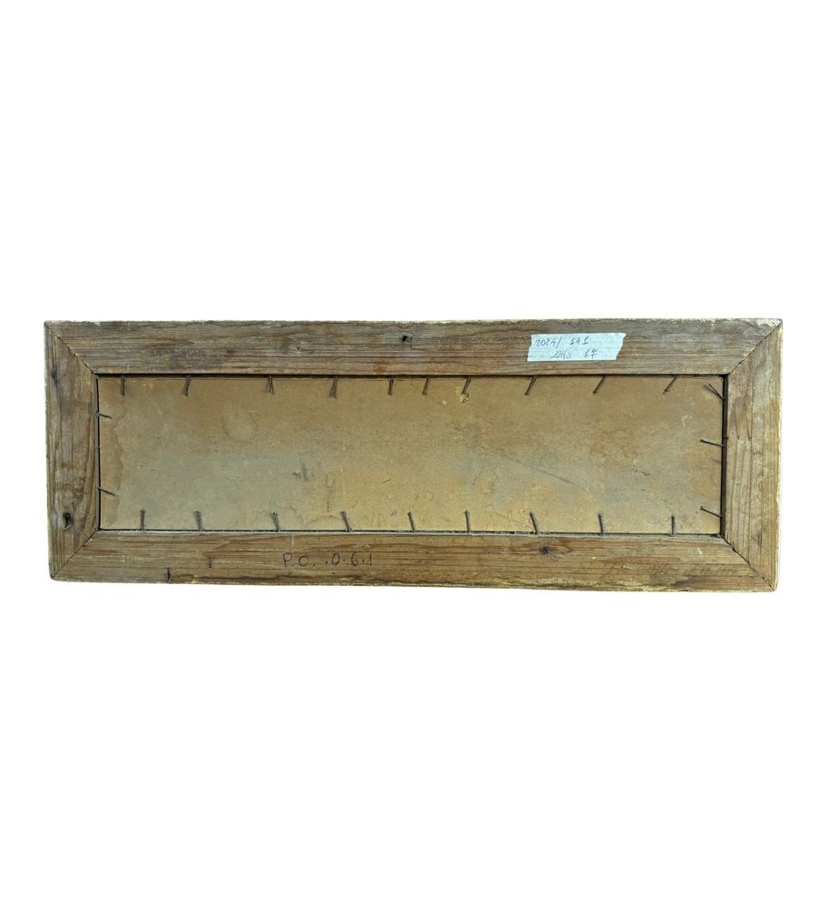 Dipinto olio su pannello, periodo inizio XX secolo scuola Italiana, raffigurante Paesaggio. Dimensioni compreso cornice: 72x26 cm. Dimensioni interno cornice: 61x16 cm. Reca firma in basso a destra da artista non identificato. Opera in buone condizioni.
