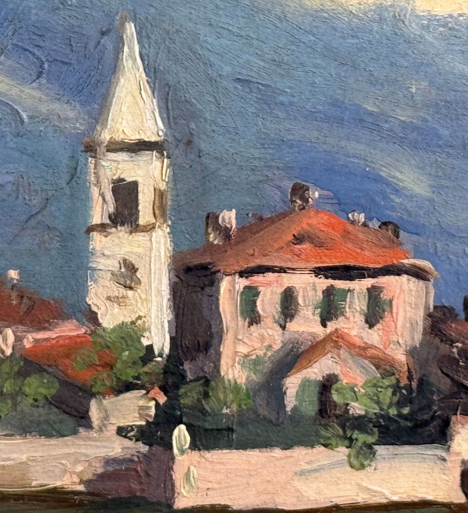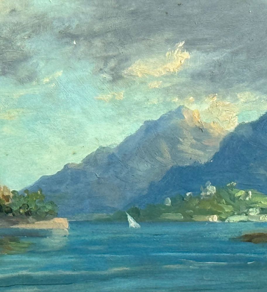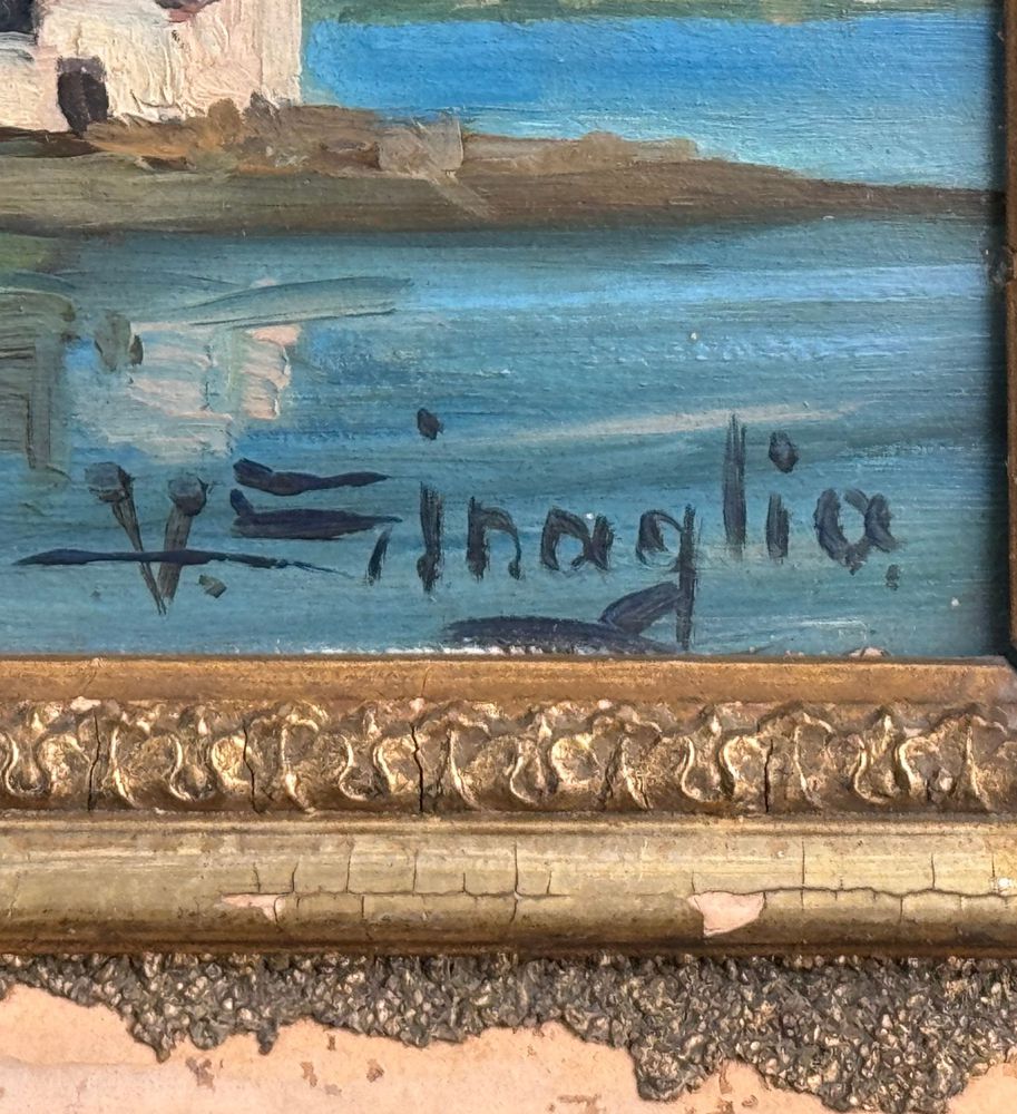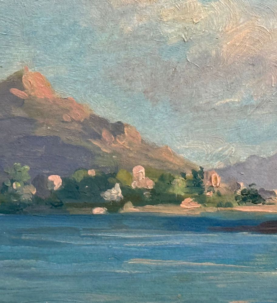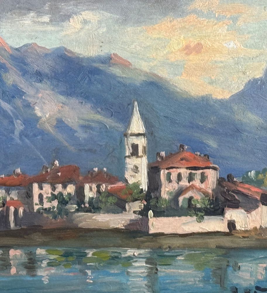 Dipinto olio su pannello, periodo inizio XX secolo scuola Italiana, raffigurante Paesaggio. Dimensioni compreso cornice: 72x26 cm. Dimensioni interno cornice: 61x16 cm. Reca firma in basso a destra da artista non identificato. Opera in buone condizioni.