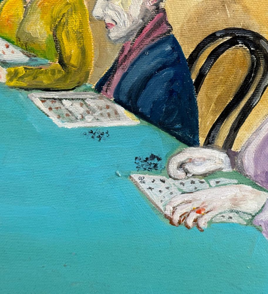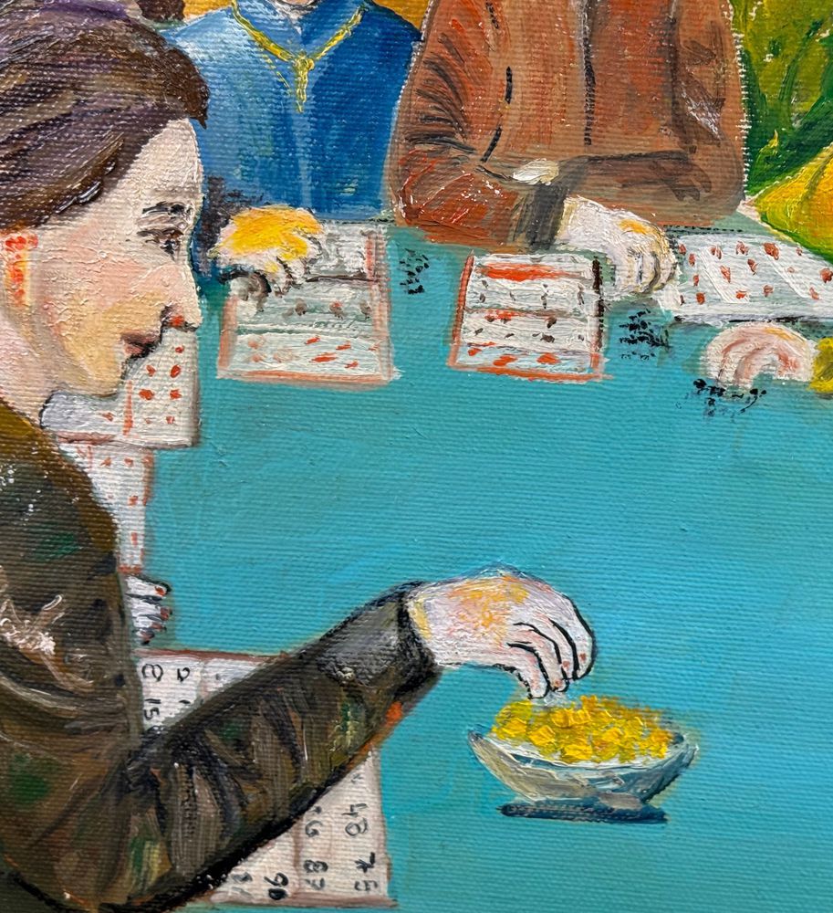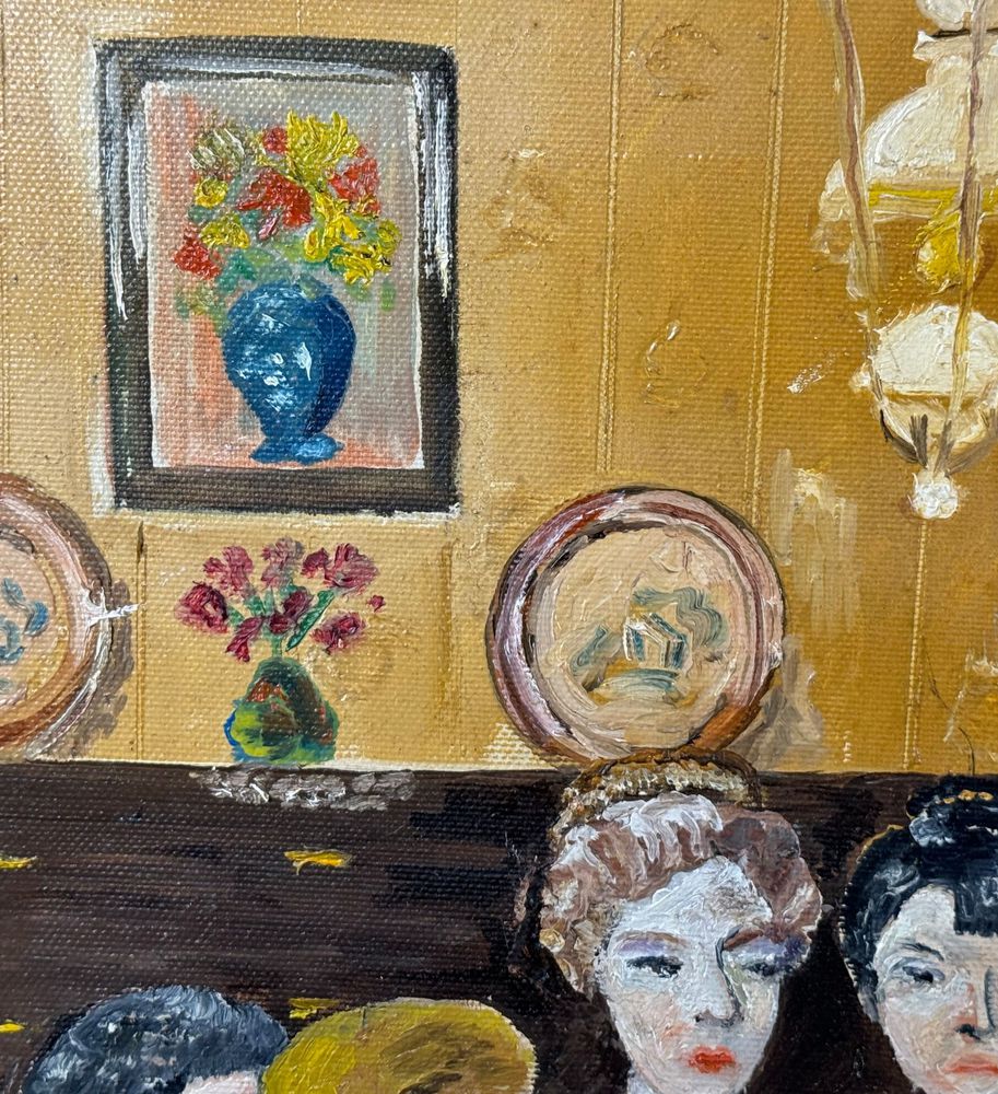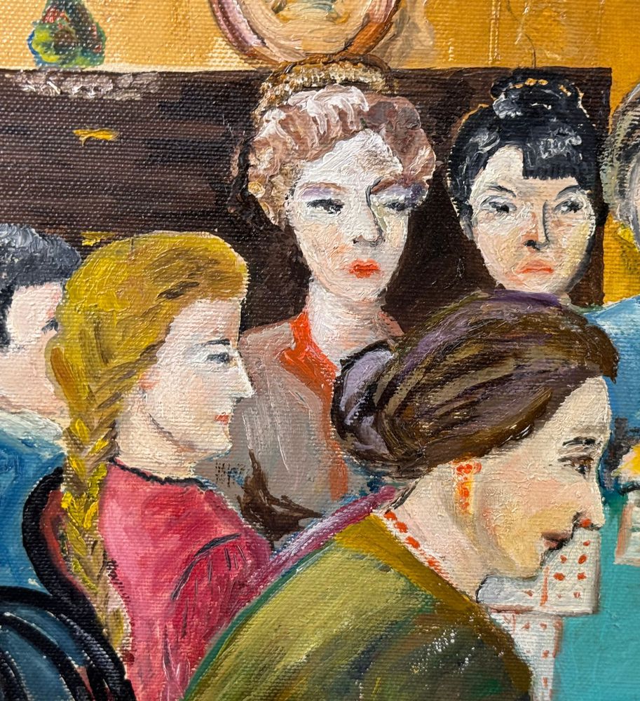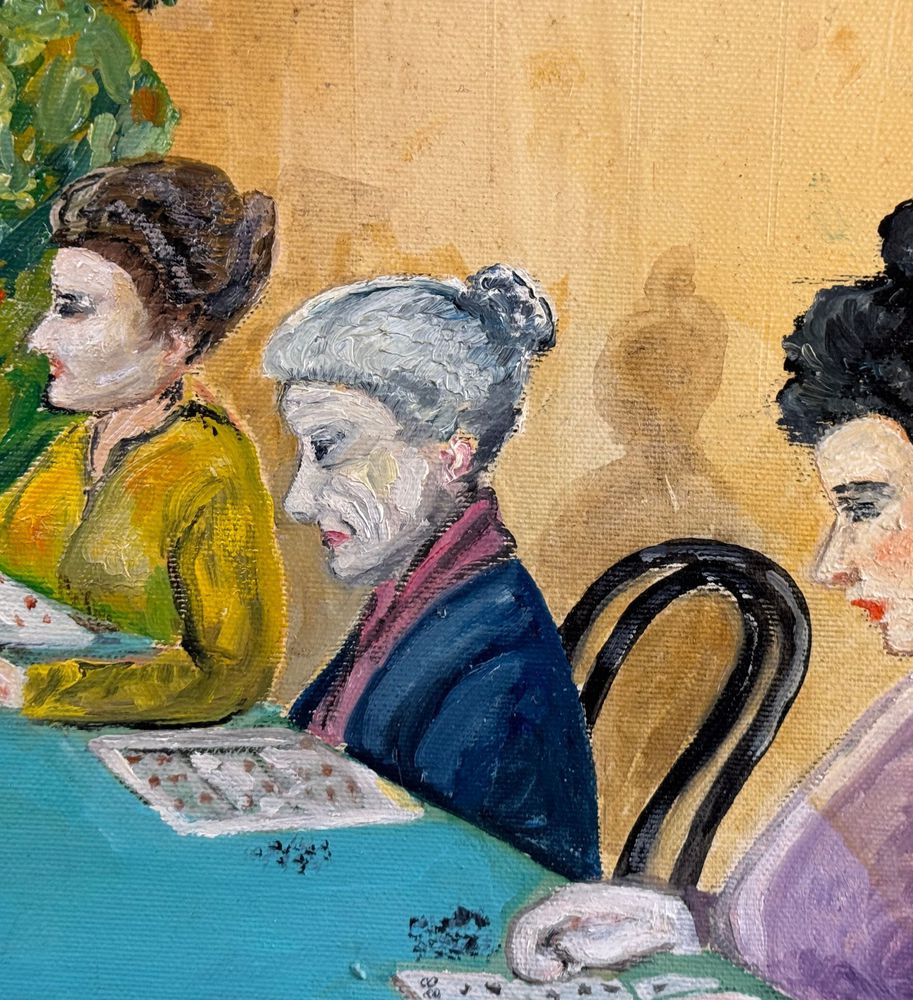 Dipinto olio su tela, periodo XX secolo scuola Italiana, raffigurante La Tombola delle Signore. Dimensioni compreso cornice: 102x78 cm. Dimensioni interno cornice: 70x50 cm. Reca firma in basso a destra da artista non identificato. Opera in buone condizioni.
