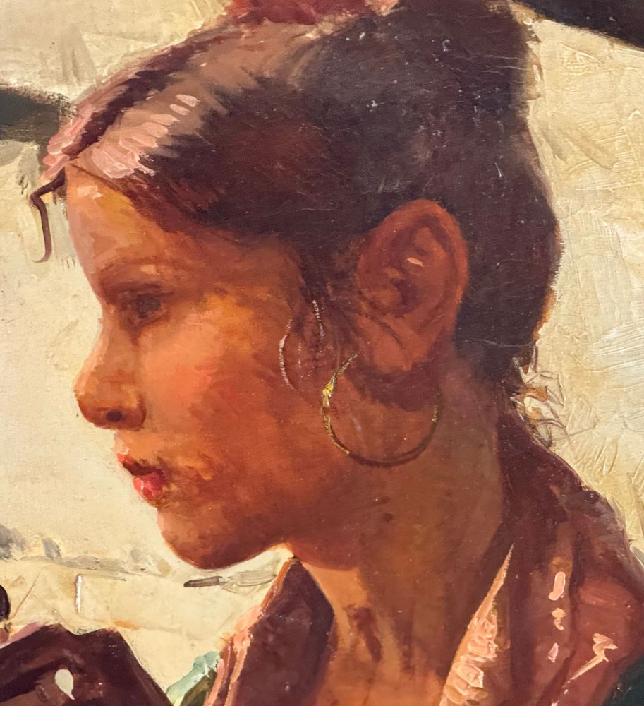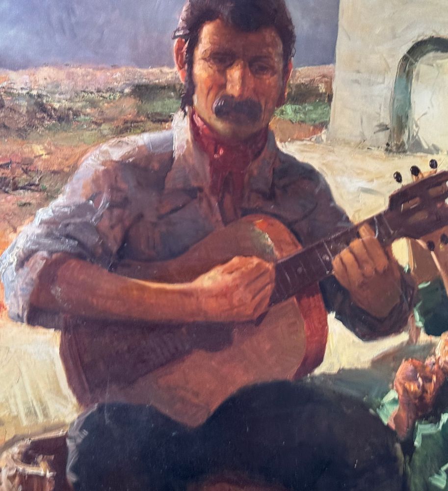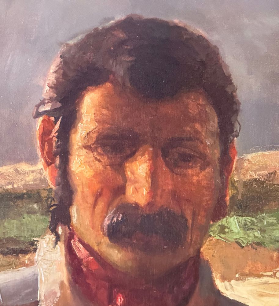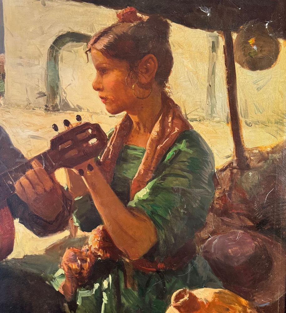 Dipinto olio su tela, periodo XX secolo scuola Italiana, raffigurante Due personaggi. Dimensioni compreso cornice: 154x113 cm. Dimensioni interno cornice: 140x100 cm. Reca firma in basso a destra da Tonino Manna. Opera in buone condizioni. Da segnalare tre piccoli punti di restauro alla tela.