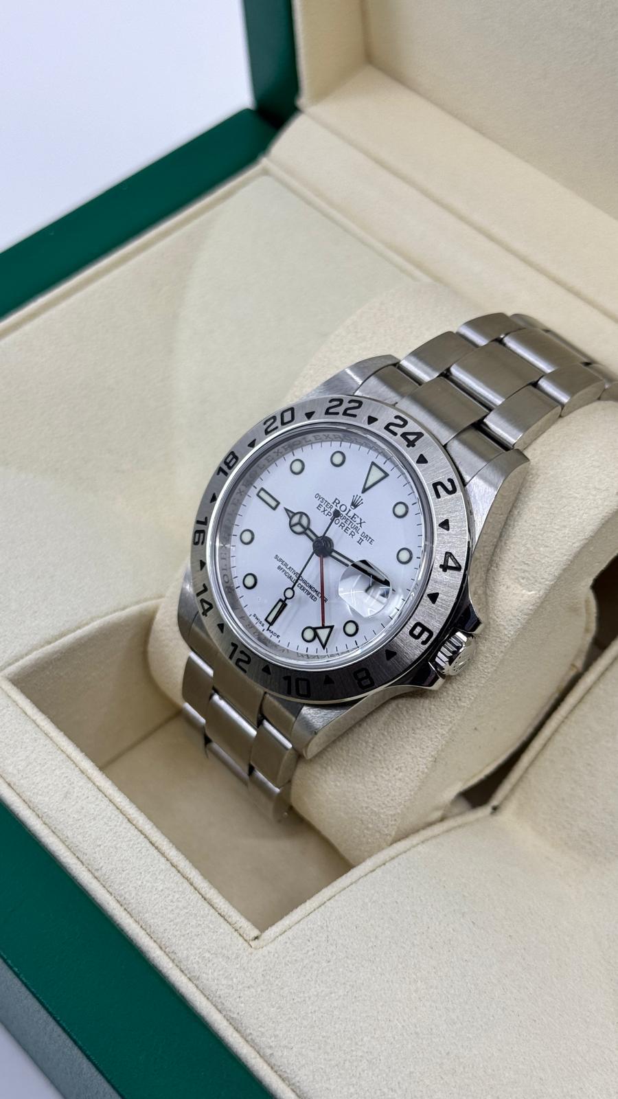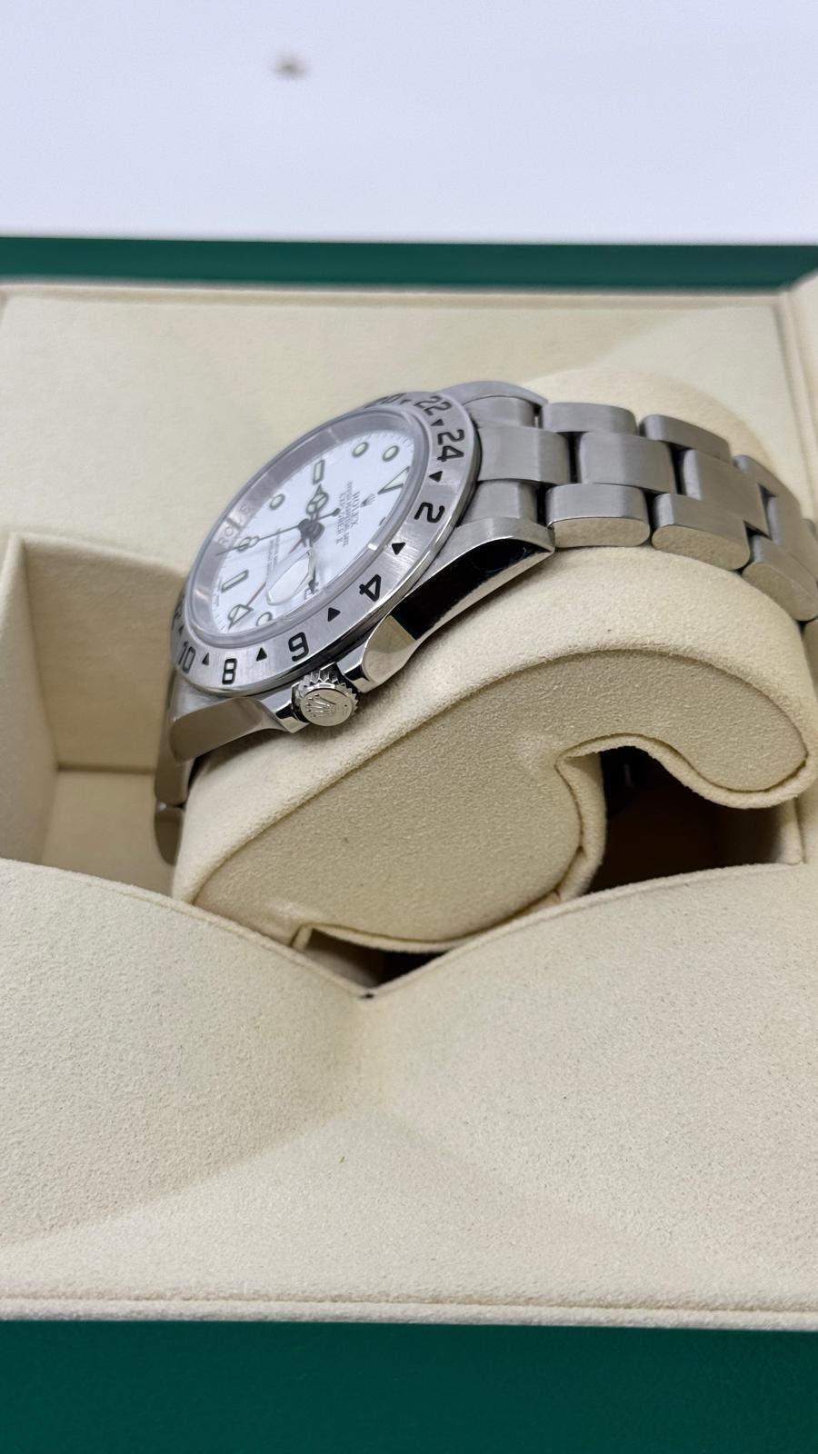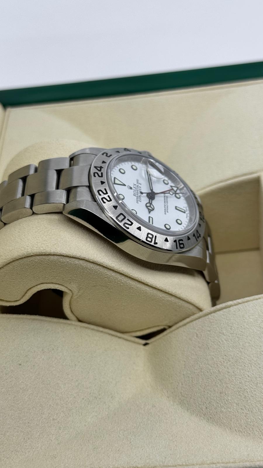 Marca Rolex Modello (Orologio) Explorer II Numero di referenza 16570 Carica Automatico Materiale della cassa Acciaio Materiale cinturino Acciaio Cassa rrr seriale V Cassa senza fori Materiale della cassa Acciaio Diametro 40 mm Impermeabile 10 ATM Materiale lunetta Acciaio Vetro Vetro zaffiro Quadrante bianco Numeri sul quadrante Senza numeri Cinturino Materiale cinturino Acciaio Colore cinturino Acciaio Chiusura Déployante Materiale chiusura Acciaio