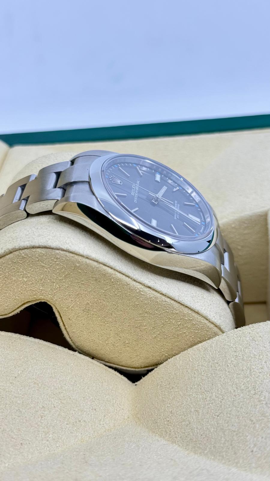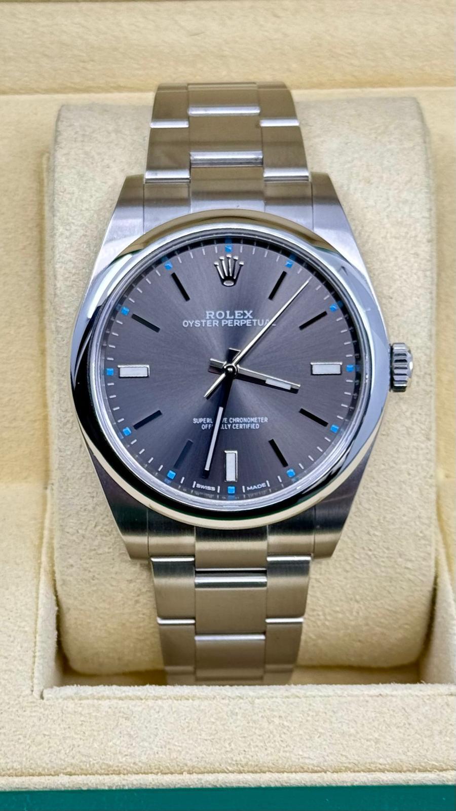 Marca Rolex Modello (Orologio) Oyster Perpetual 39 Numero di referenza 114300 Carica Automatico Materiale della cassa Acciaio Materiale cinturino Acciaio Anno di produzione 2018 Condizione eccellente Corredo Con documenti originali, no box Carica automatica Cassa Materiale della cassa Acciaio Diametro 39 mm Impermeabile 10 ATM Materiale lunetta Acciaio Vetro Vetro zaffiro Numeri sul quadrante Senza numeri Cinturino Materiale cinturino Acciaio Colore cinturino Acciaio Chiusura Déployante Materiale chiusura Acciaio