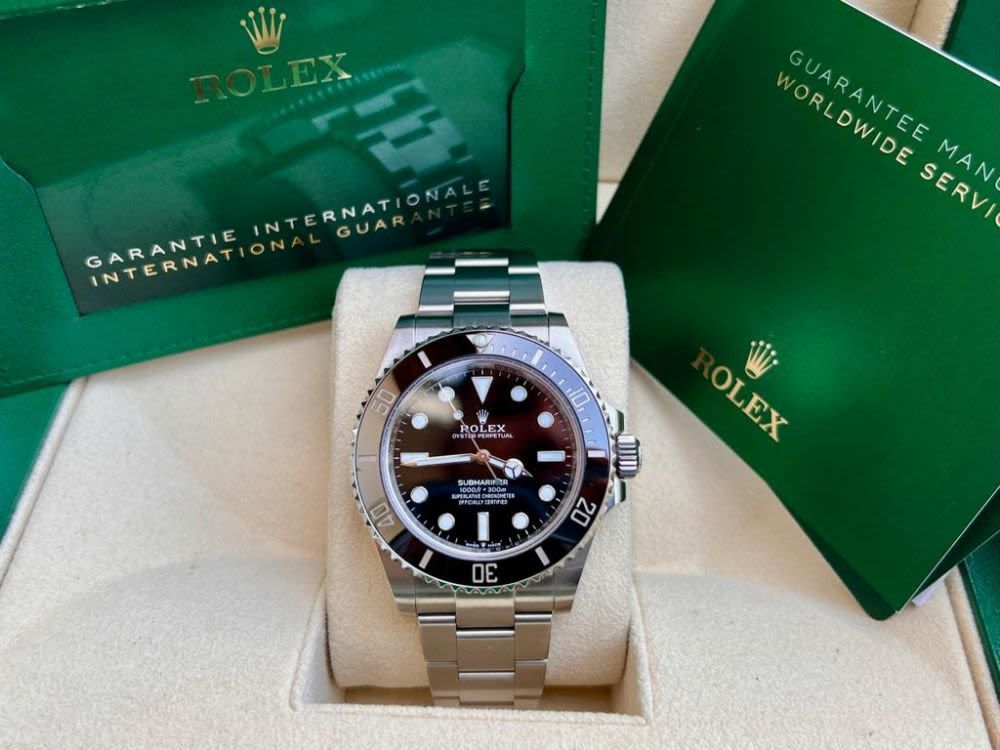 Marca Rolex Modello (Orologio) Submariner (No Date) Numero di referenza 124060 Carica Automatico Materiale della cassa Acciaio Materiale cinturino Acciaio Anno di produzione 2021/22 Corredo Con documenti originali, scatola di fornitura Calibro Carica Automatico Cassa Materiale della cassa Acciaio Diametro 41 mm Impermeabile 30 ATM Materiale lunetta Ceramica Vetro Vetro zaffiro Quadrante Nero Numeri sul quadrante Senza numeri Cinturino Materiale cinturino Acciaio Colore cinturino Acciaio Chiusura Déployante Materiale chiusura Acciaio