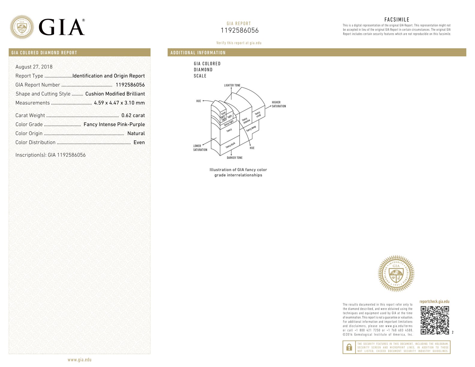 DIAMANTE NATURAL POLISHED 0,62 CT Natural Fancy ROSA VIOLA TAGLIO CUSCINO - CERTIFICATO GIA - EY40707