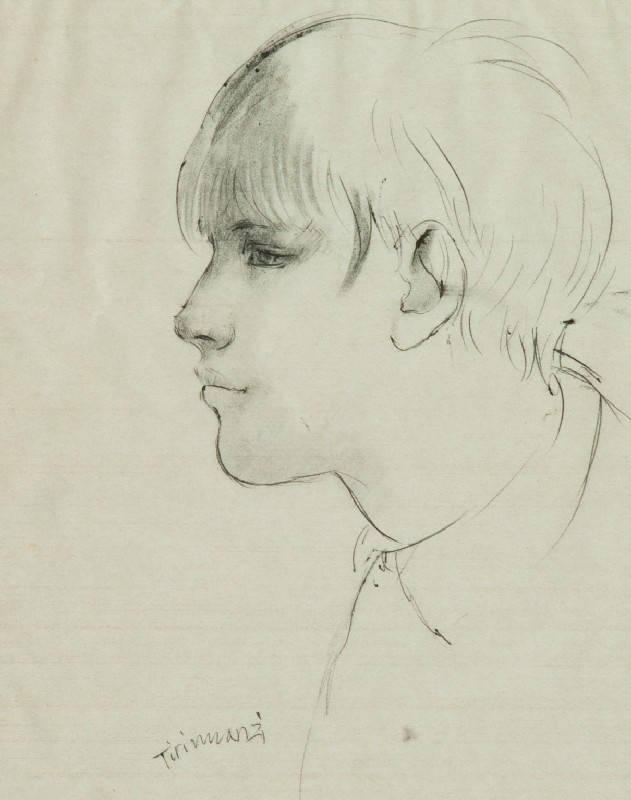 Nino Tirinnanzi (Greve in Chianti (Fi) 1923 - 2002) VOLTO Biro e carboncino su carta, cm. 23,5x19 Firmato in basso a sinistra.