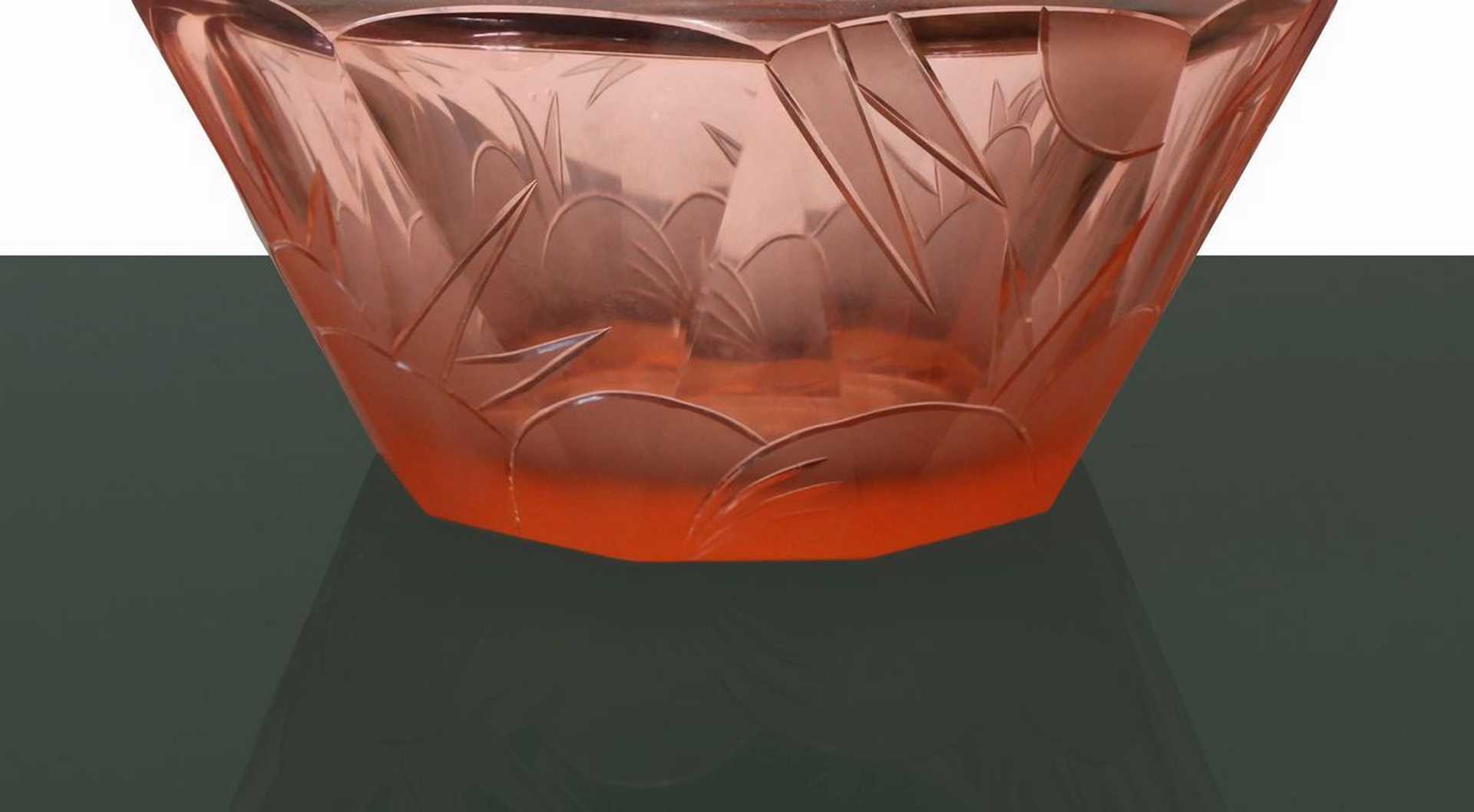 Argentiere Filippo Chiappe - Biscottiera in vetro molato rosa con coperchio in argento 900, Deco H