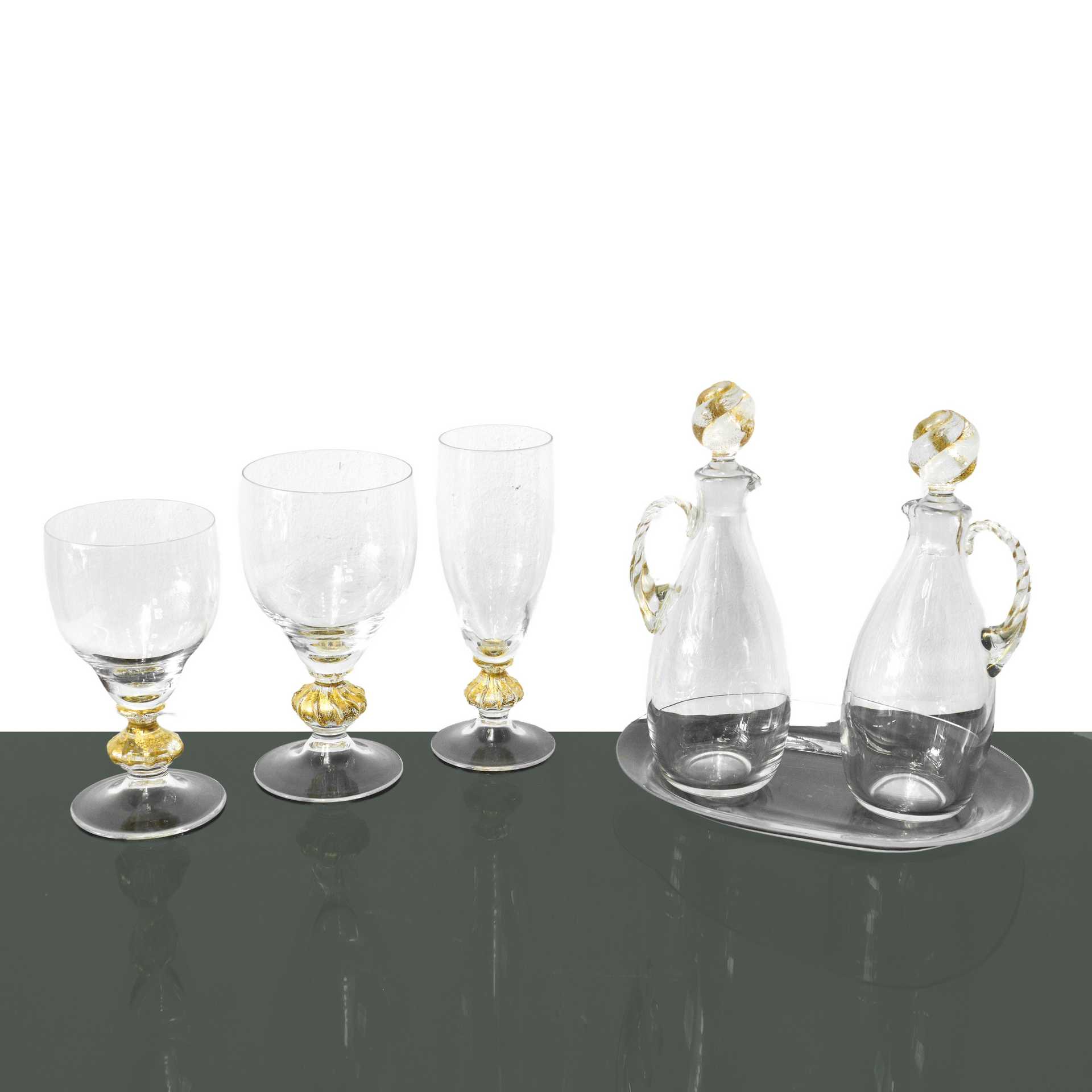 Servizio di bicchieri da sei, in cristallo con dettagli filigranati dorati, 20° secolo