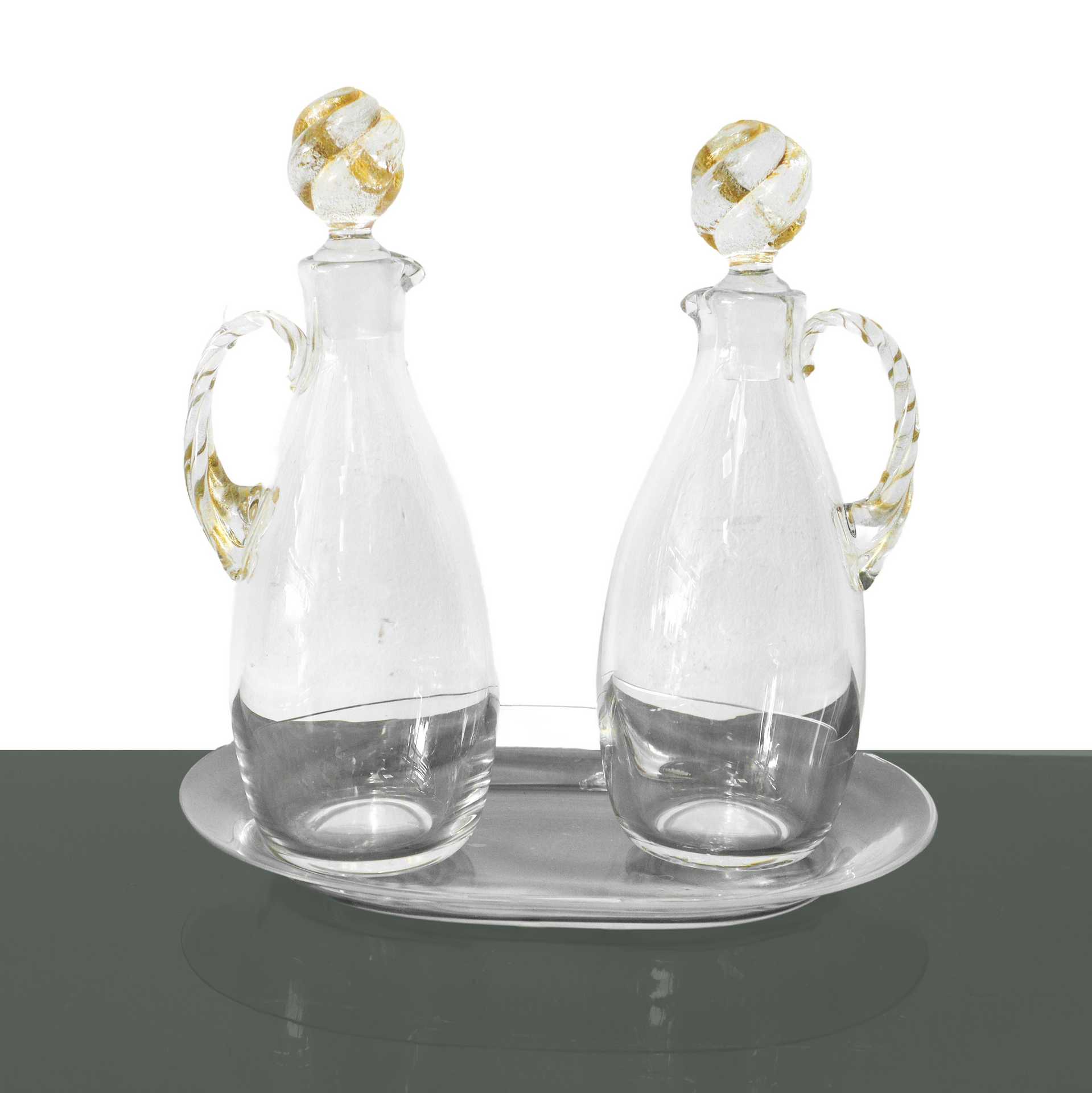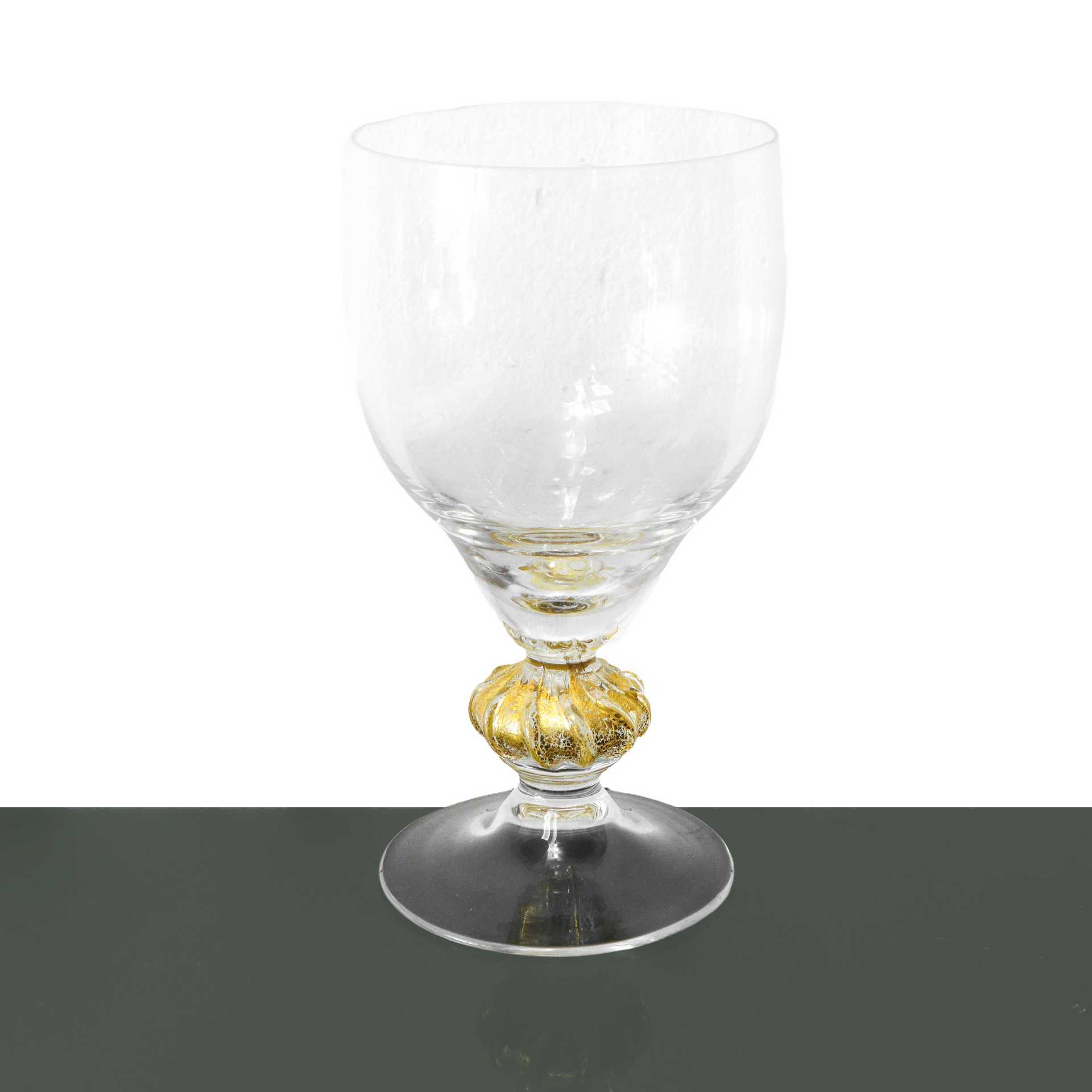 Servizio di bicchieri da sei, in cristallo con dettagli filigranati dorati, 20° secolo bicchiere ac