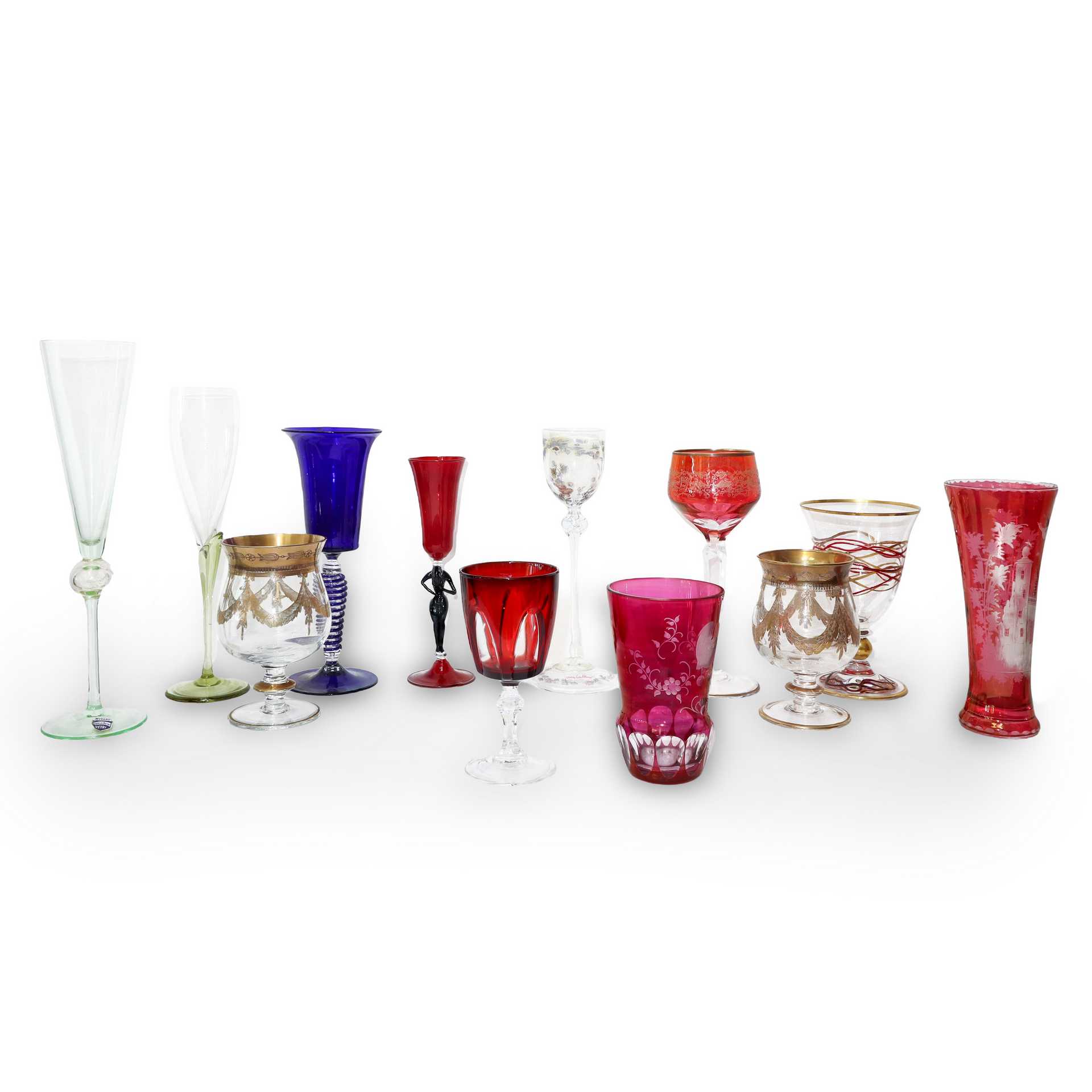 Gruppo di N. 12 bicchieri in cristallo e vetro di Murano