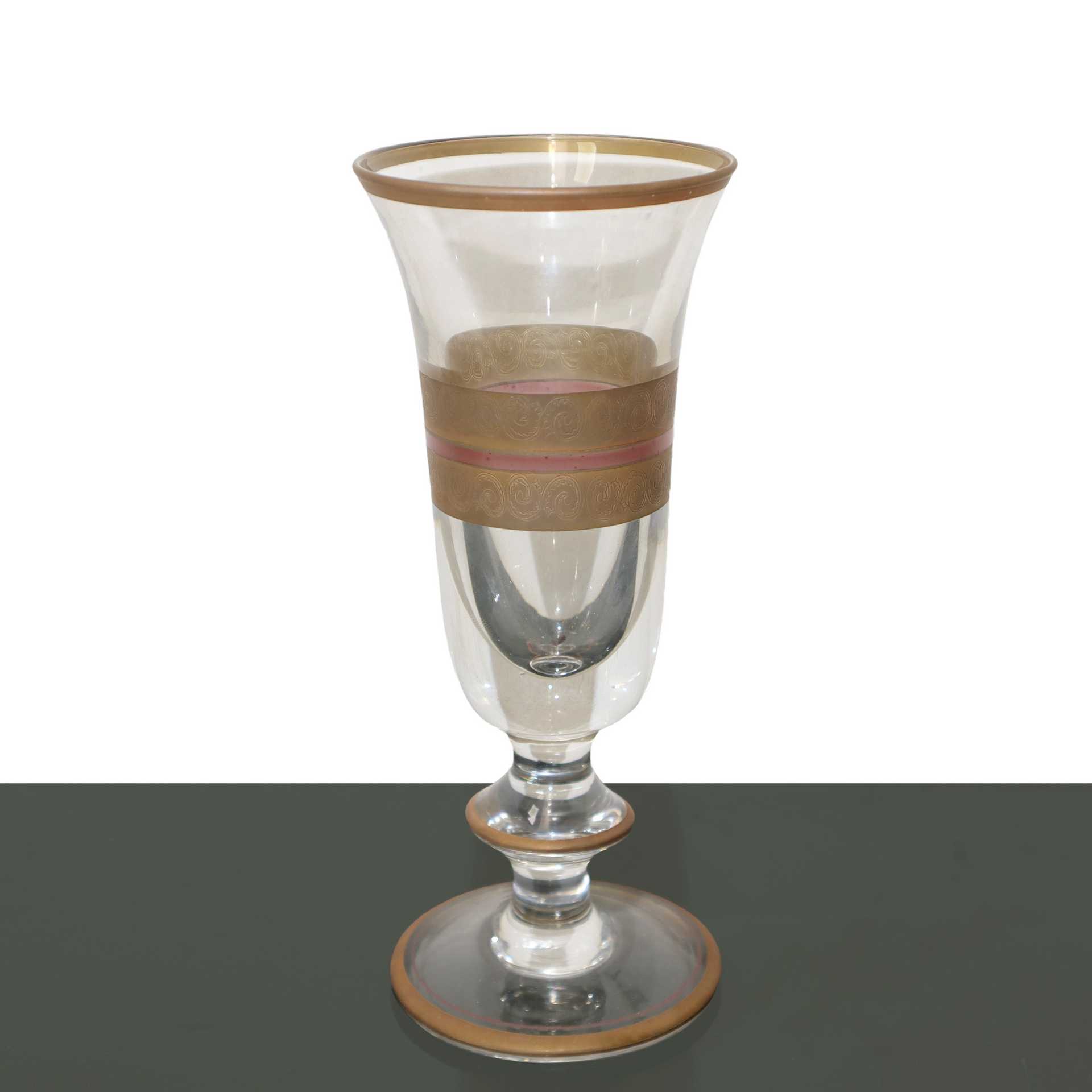 Servizio di bicchieri da 12 in vetro di Murano con dettaglio in oro e rosa. Composto da: N. 12 cal