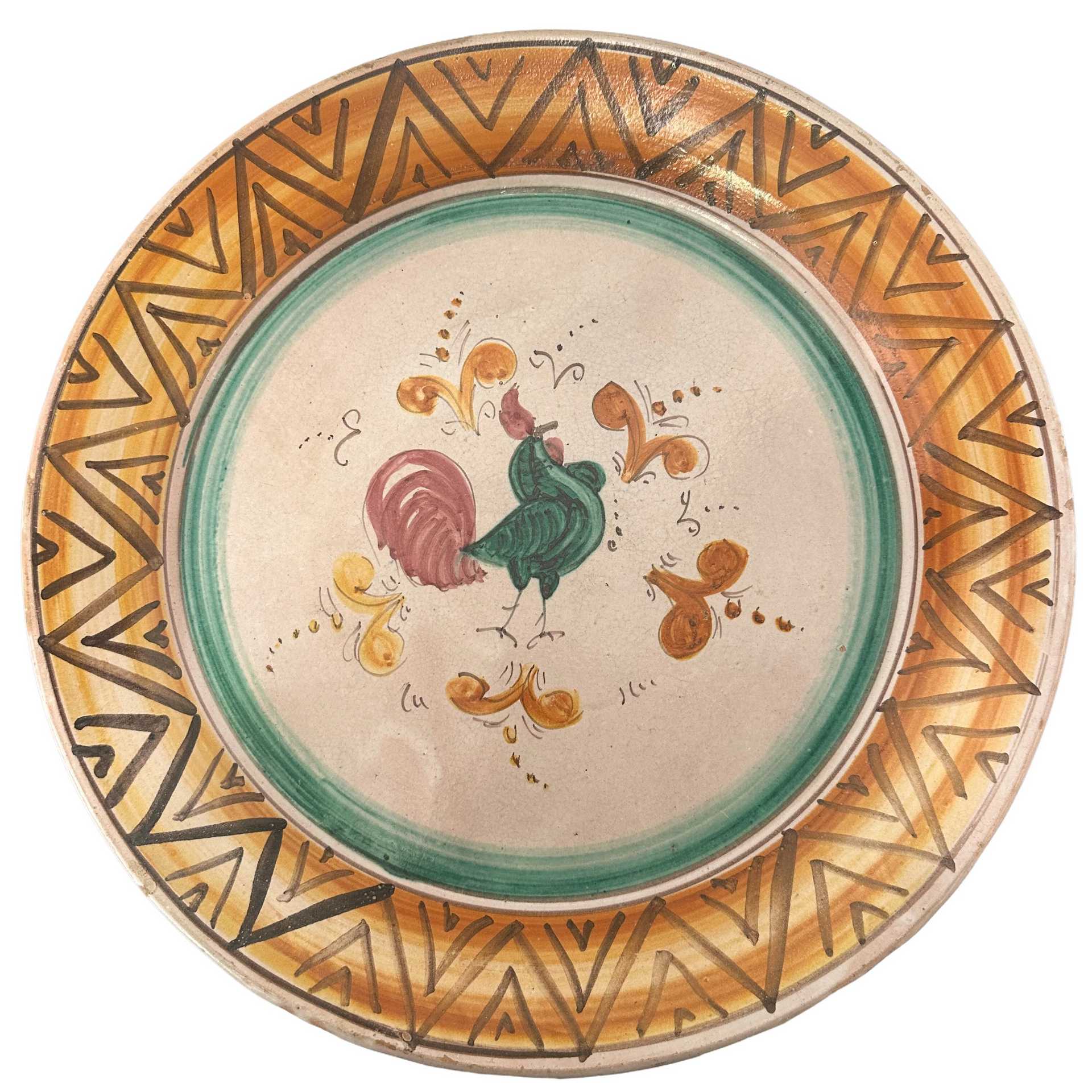 Grande piatto in maiolica policroma di Patti con gallo al centro,
