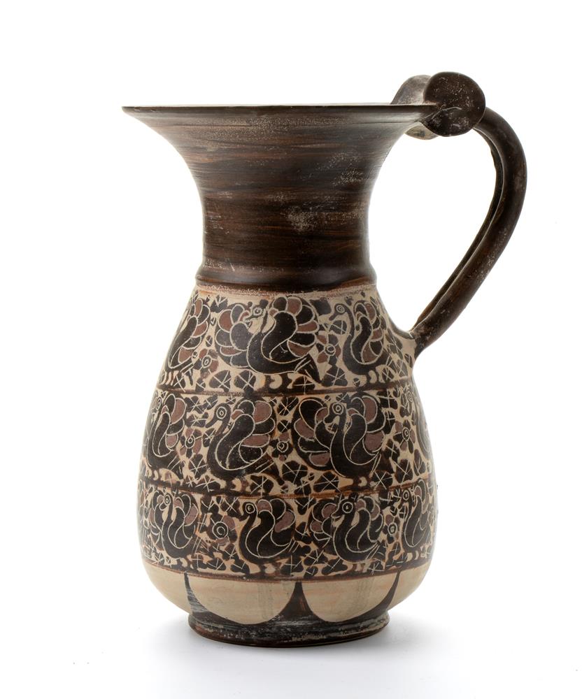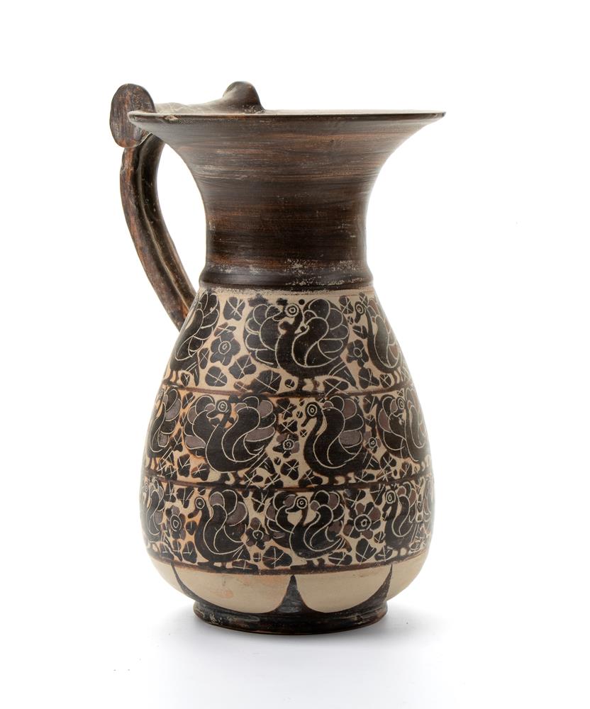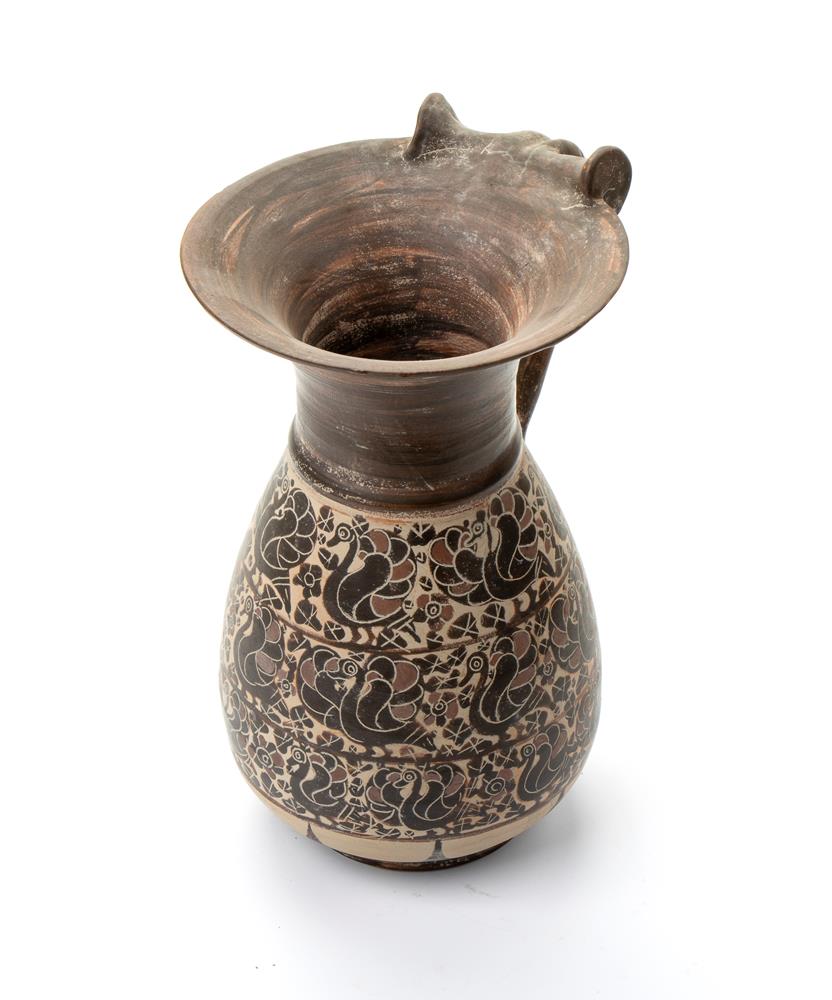 Versatoio monoansato in ceramica arcaica a figure nere rappresentante uccelli XX secolo