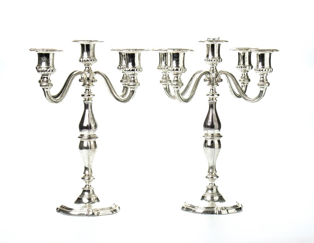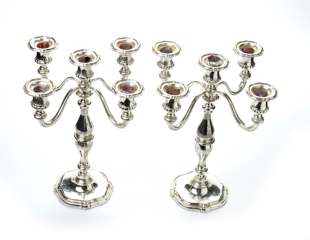 Coppia di piccoli candelieri a 5 fuochi in metallo argentato