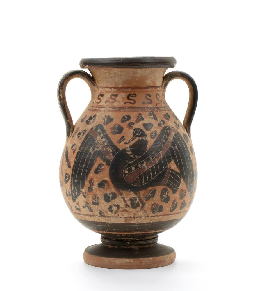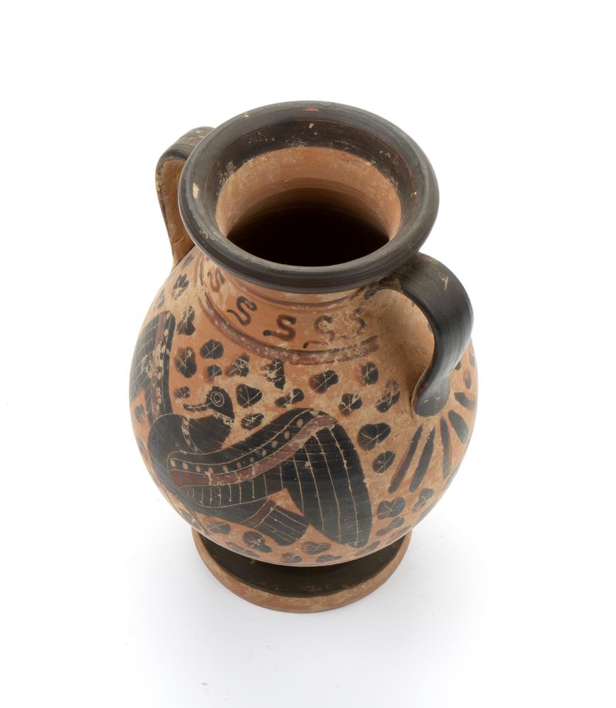Lot 207 | Anfora biansata in ceramica arcaica a figure nere con raffigurato sul fronte uccello ad ali spiegate