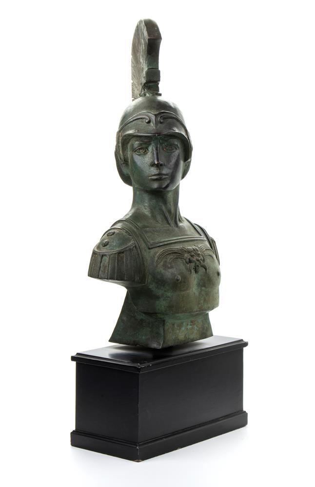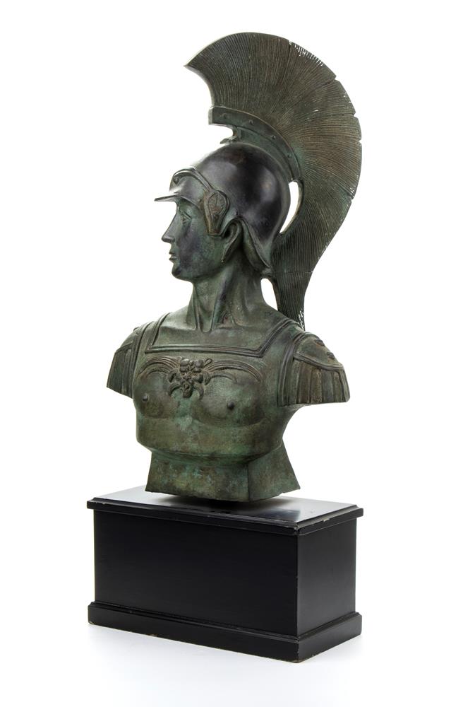 Lot 224 | Busto in bronzo di guerriero con elmo su base in legno laccato
