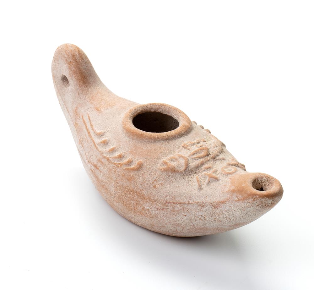 Lucerna in terracotta con pesci e IX0YC XX secolo