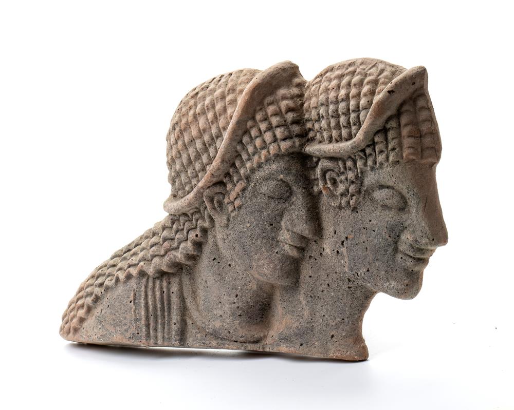 Rilievo in pietra in stile etrusco raffigurante coppia di sposi di profilo XX secolo