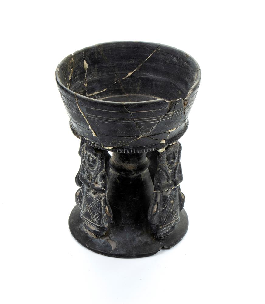 Lot 251 | Coppa in ceramica buccheroide con sostegni antopomorfi e decori a filettature concentriche incise