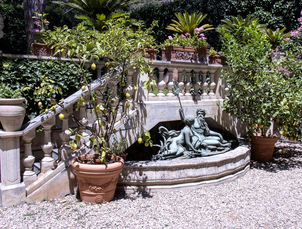 Grande gruppo scultoreo in bronzo patinato raffigurante Nettuno e Anfitrite
