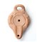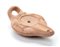 Lucerna in terracotta decorata con figure di tre pesci a rilievo