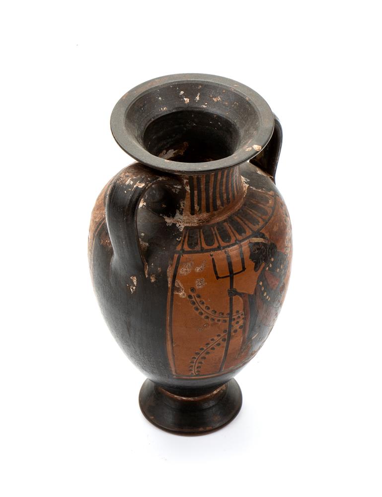 Anfora biansata in ceramica arcaica con figure nere raffiguranti un simposio