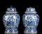 Coppia di vasi da tempio in porcellana blu e bianca con motivi arabescati e floreali